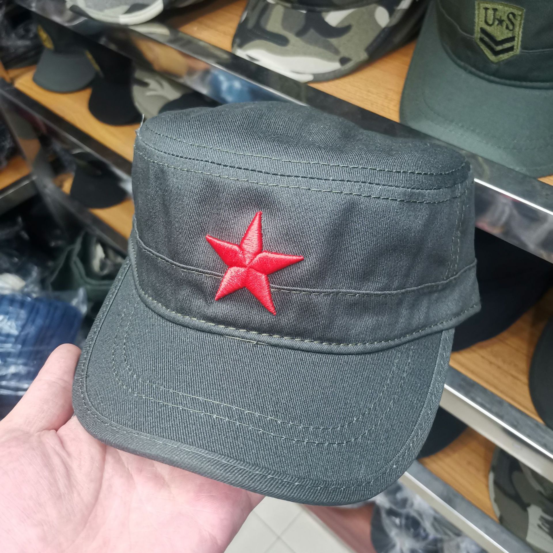 • 플랫 탑 - 밀리터리 그린 - 레드 빅 펜타곤