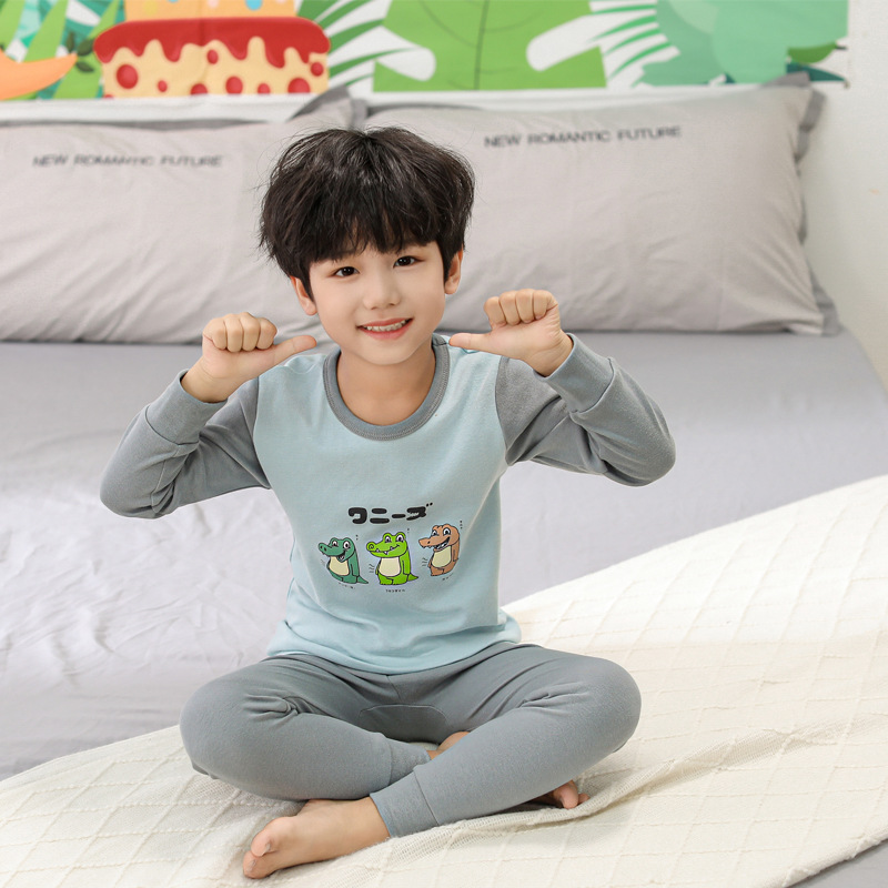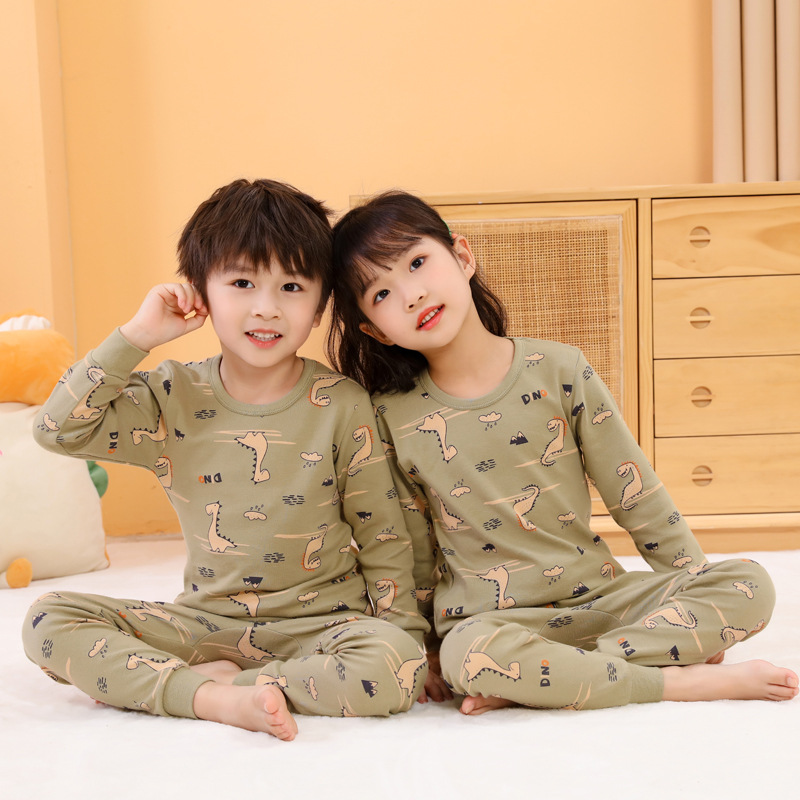 가을과 겨울 어린이 면 속옷 세트 어린이 가을 옷 소년과 소녀를위한 가을 바지 가정 의류 면 스웨터 잠옷 A