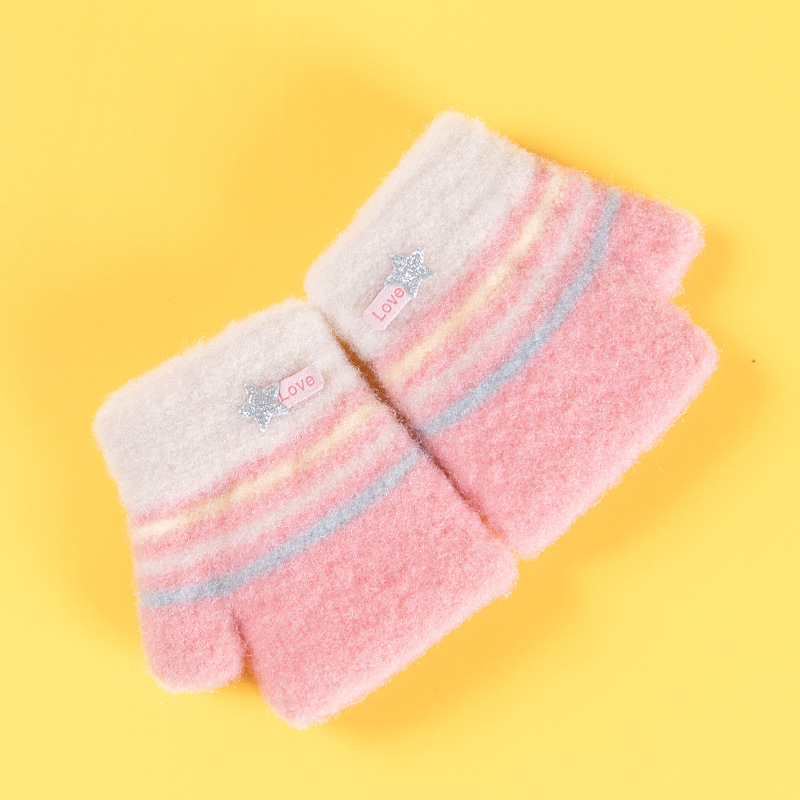现货雪花秀儿童手套工厂批发 0-2岁婴儿针织条纹锦纶秋冬半指手套