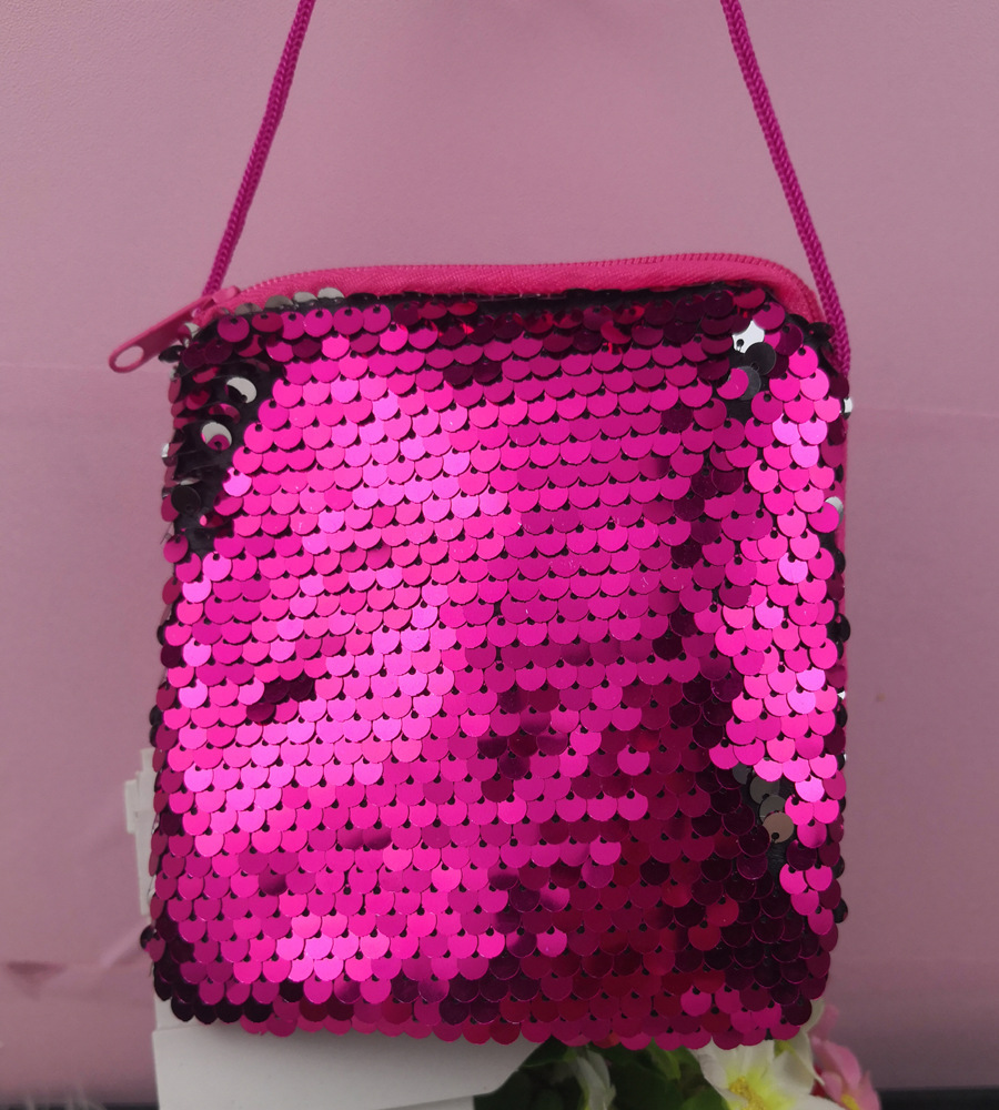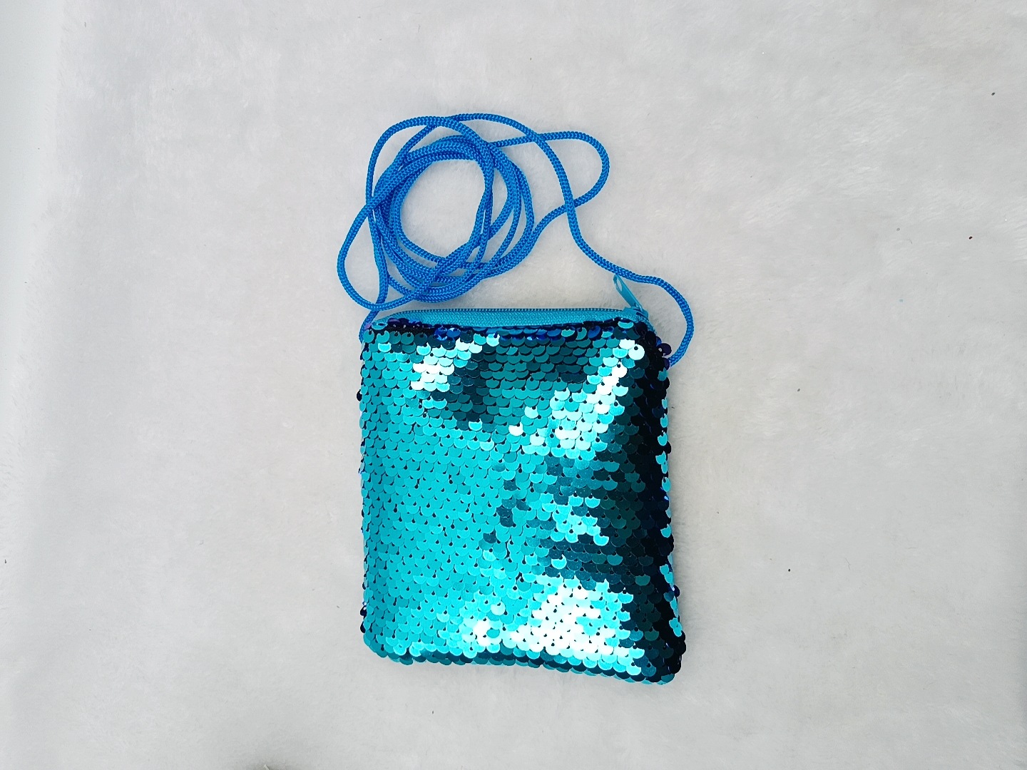 新款双面亮片斜挎儿童零钱包 正方形鱼鳞片拉链包 银行卡收纳包