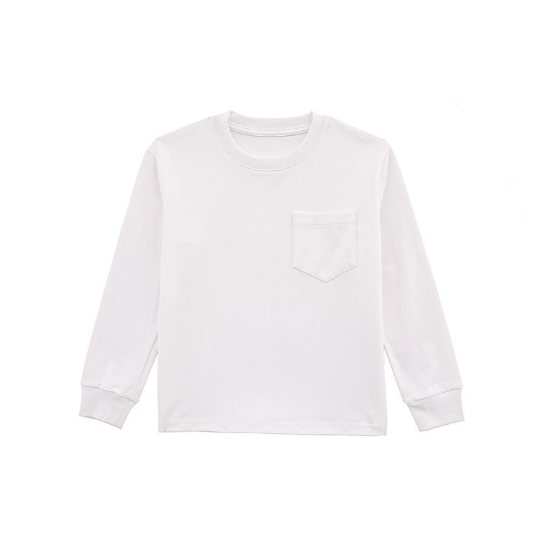 남성과 아동복 가을 만능 순면 긴팔 흰색 티셔츠 대형 아동용 라운드넥 캐주얼 베이스 셔츠 루즈한스토어 가기