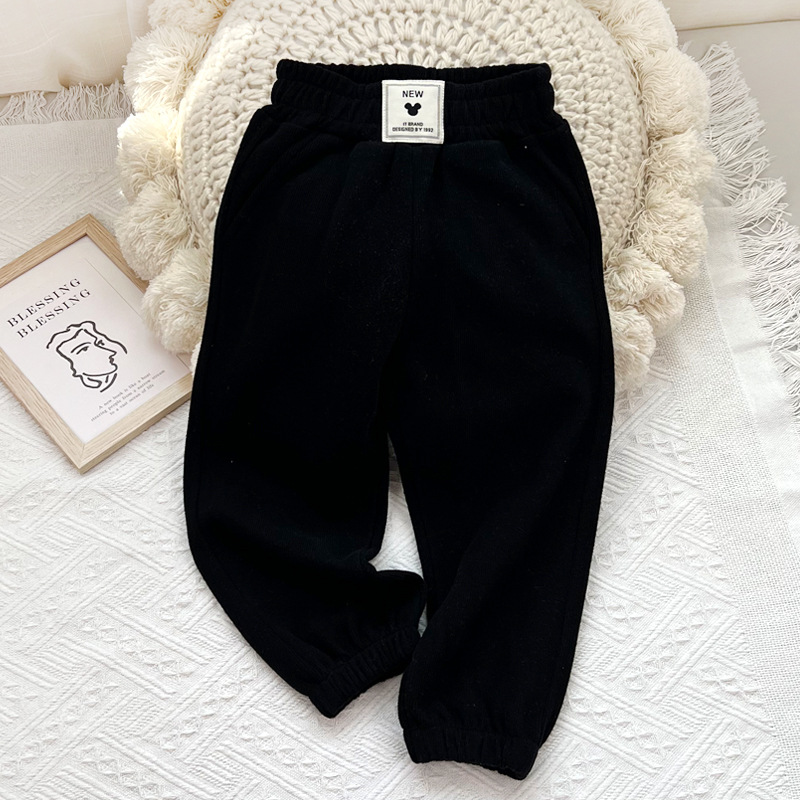 • 블랙 미키 스웨트 팬츠 기모 않음