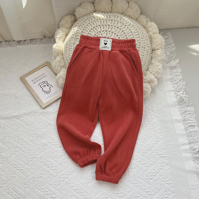 • 브릭 레드 미키 스웨트 팬츠 기모 않음