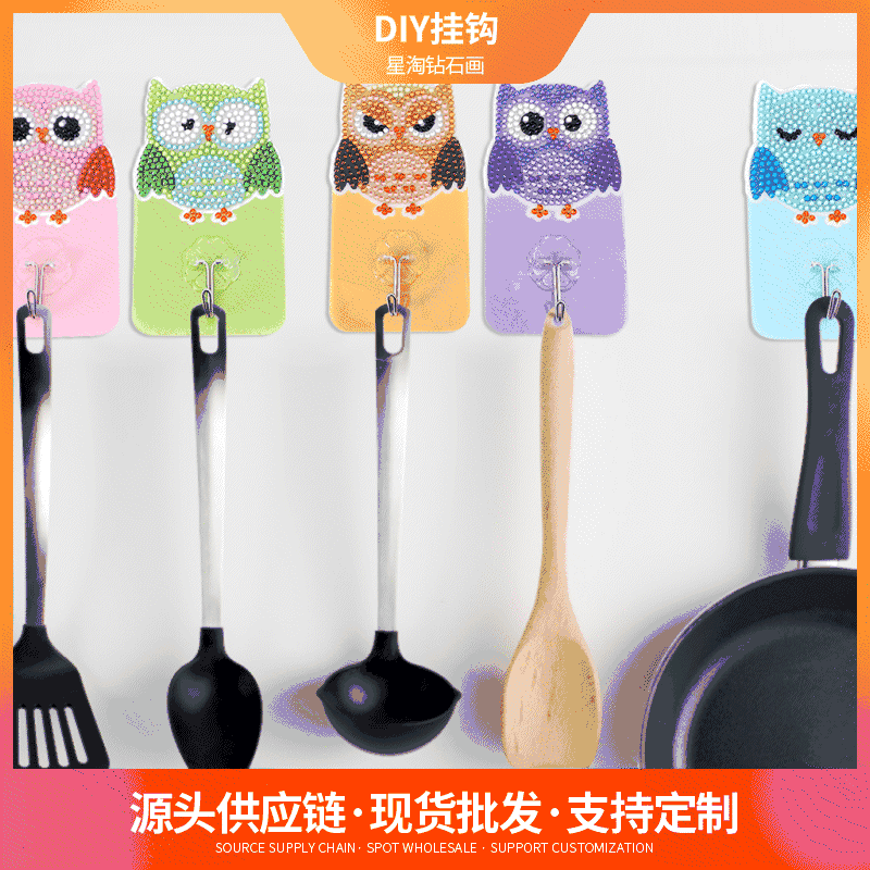 다이아몬드 페인팅 후크 올빼미 DIY 크리스탈 라운드 다이아몬드 펀치 무료 원활한 벽 후크 다이아몬드 스티커 어린이 도매스토어 가기