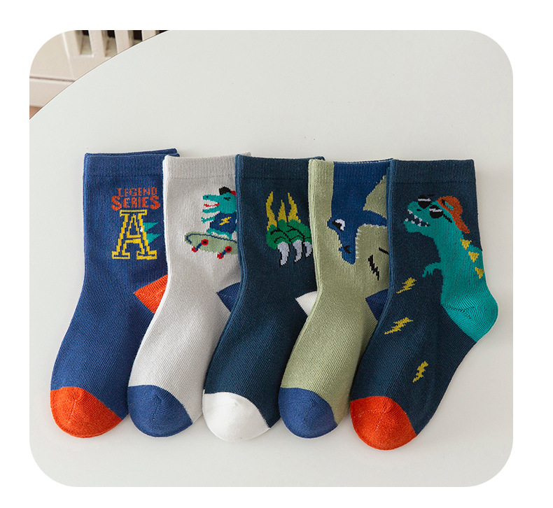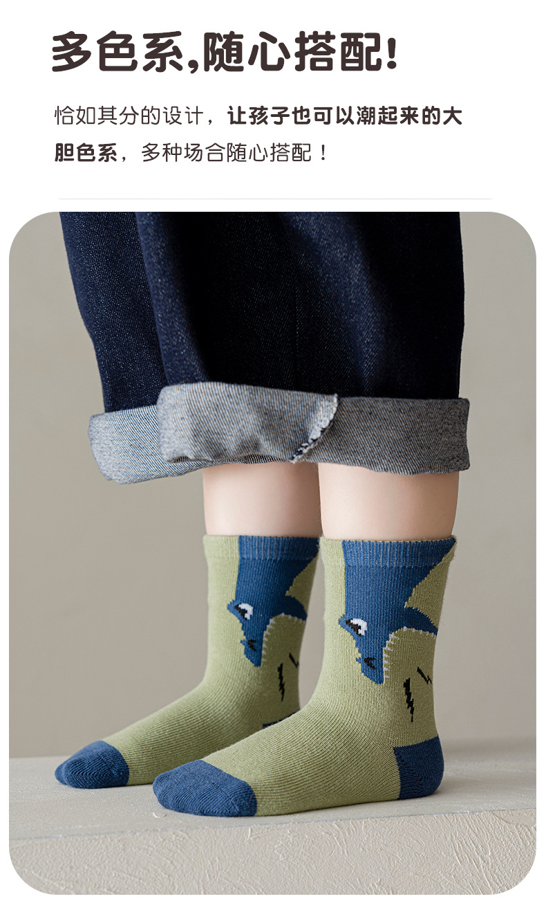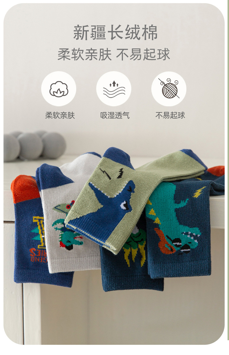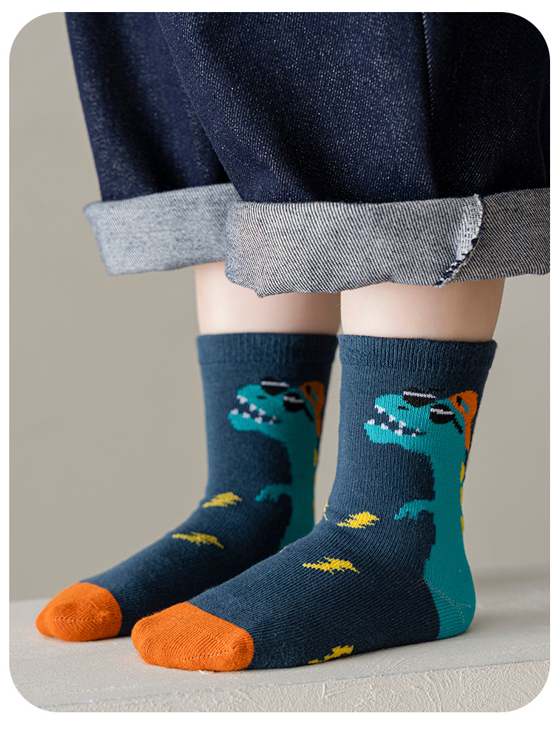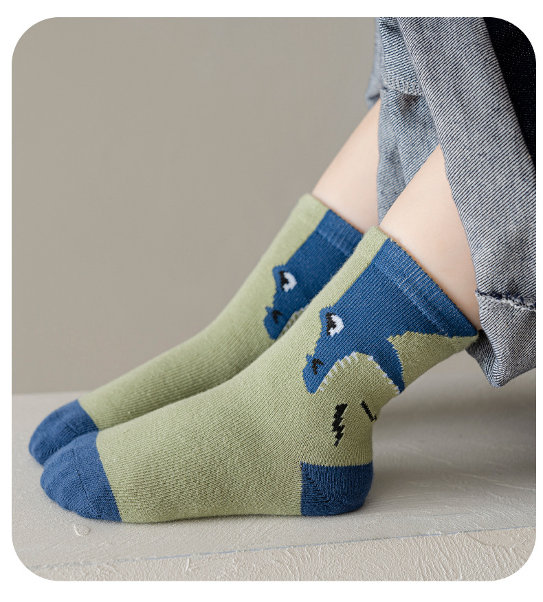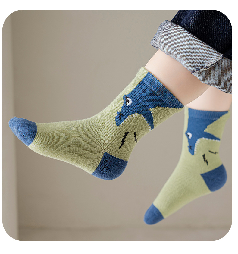 어린이 양말 2025 가을 겨울 신상 순면 중간 길이 양말 면 만화 공룡 어린이 양말 남아용 코마면 트렌디 아동 양말스토어 가기