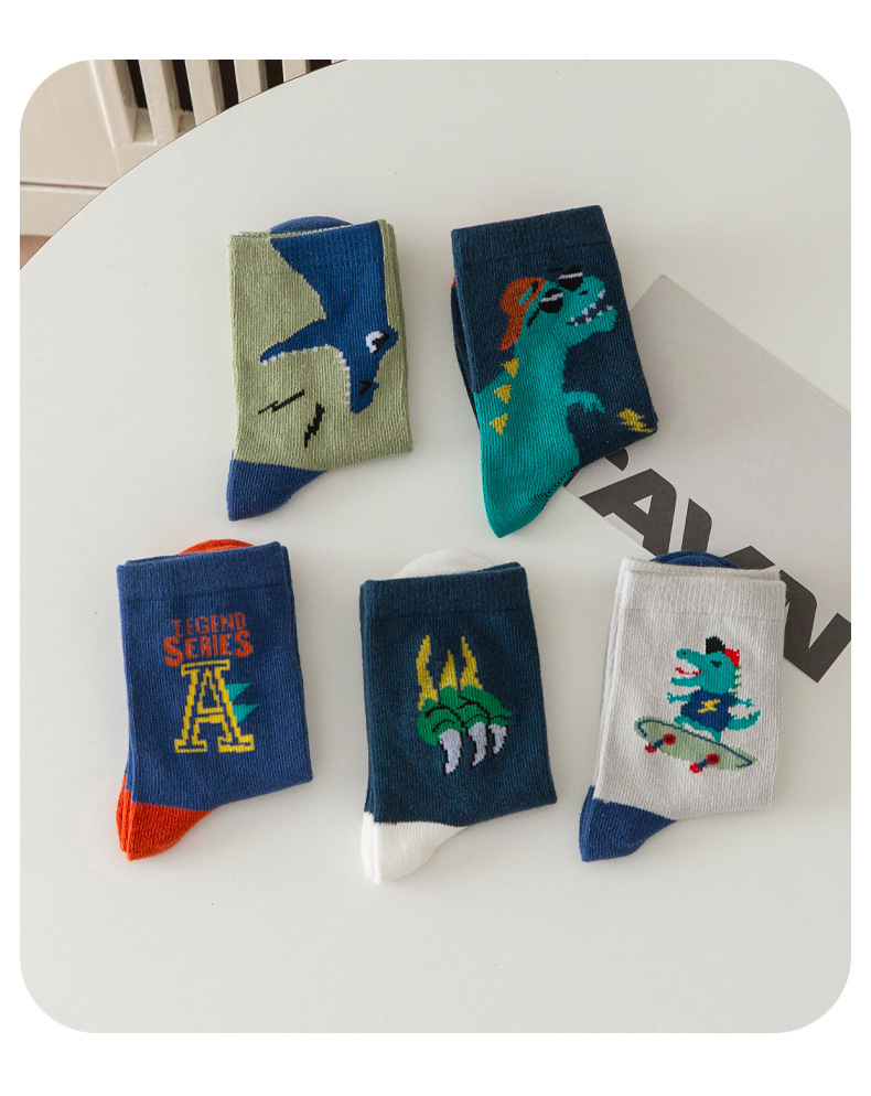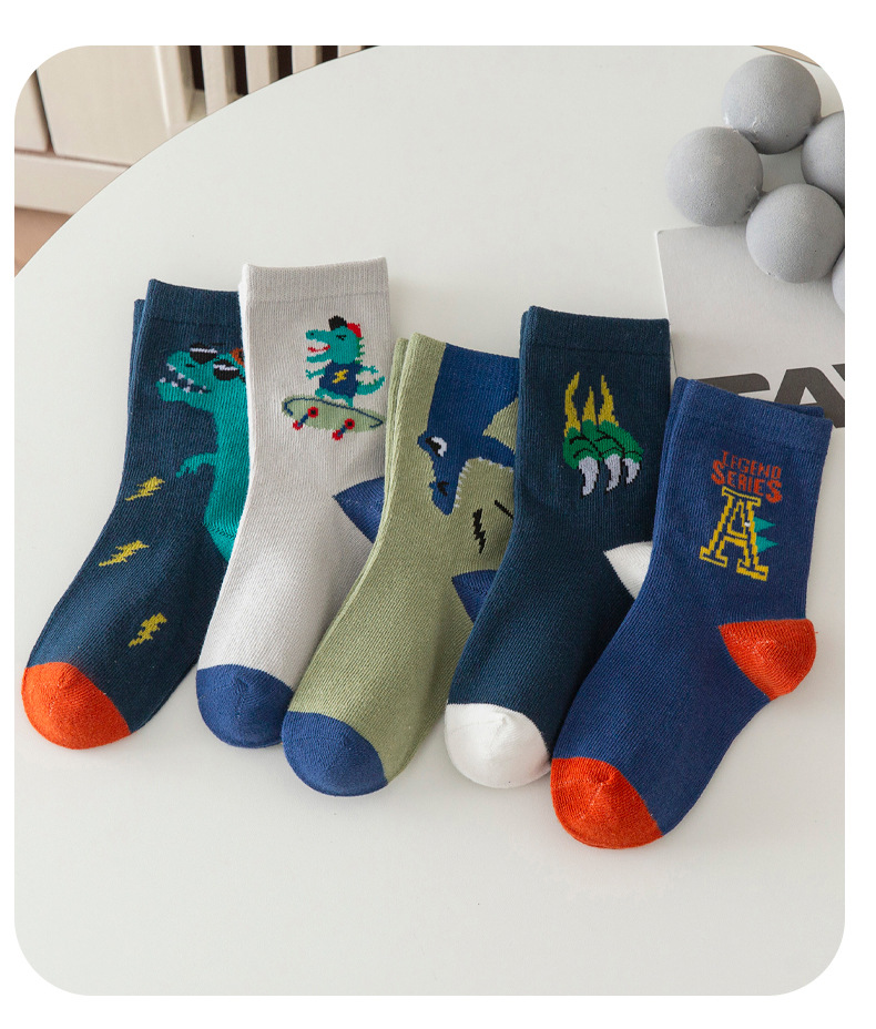 어린이 양말 2025 가을 겨울 신상 순면 중간 길이 양말 면 만화 공룡 어린이 양말 남아용 코마면 트렌디 아동 양말