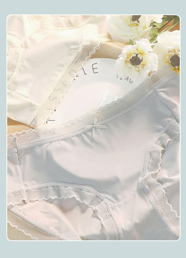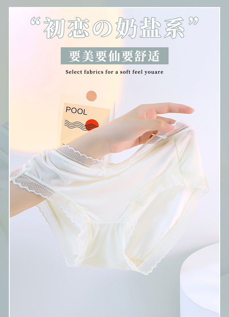 아이스 실크 속옷 여성용 심리스 울트라 씬 섹시 레이스 힙 리프팅 퍼플 셔츠 알코올 항균 가랑이 미드 웨이스트 여아 삼각형 반바지