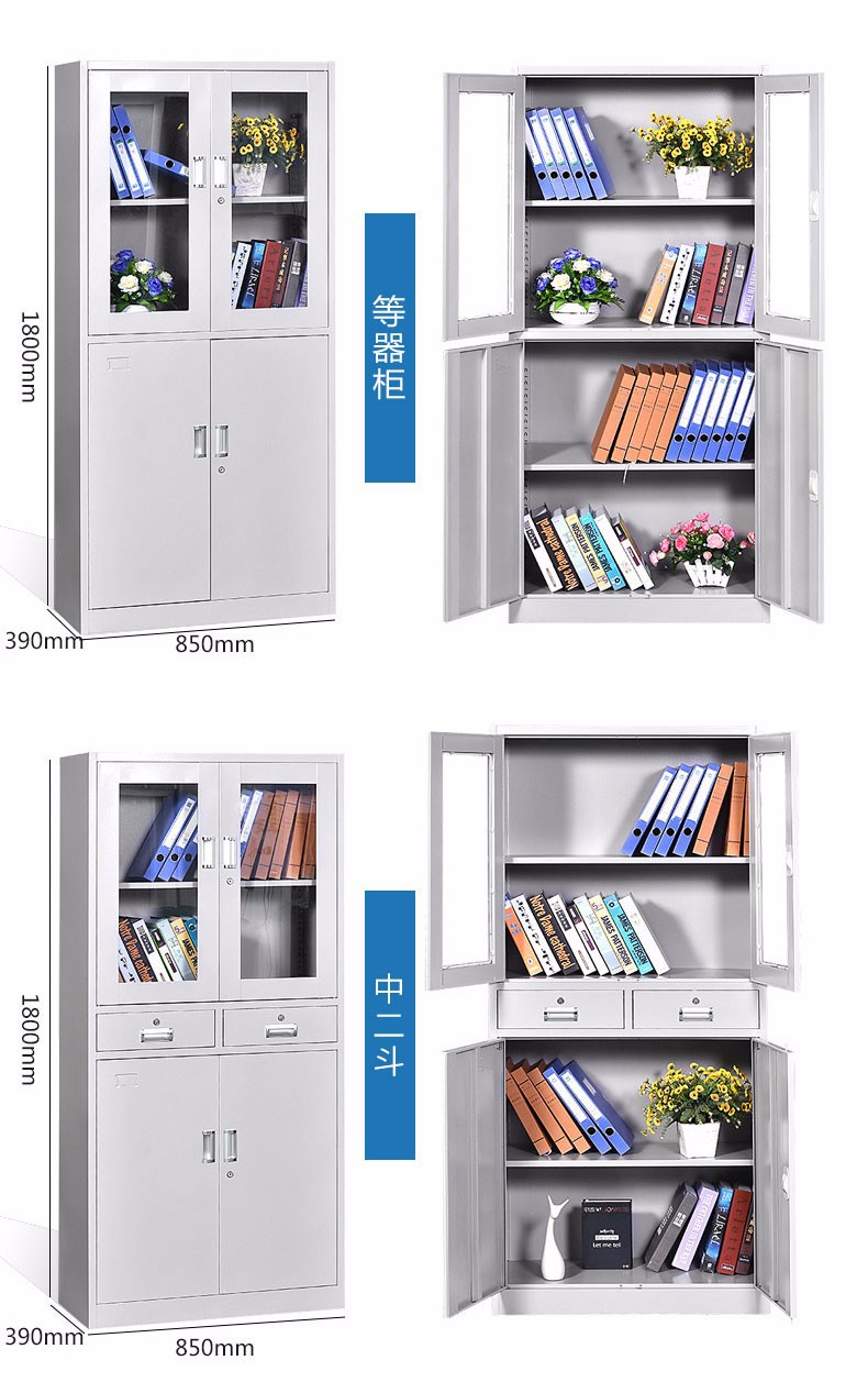 서랍이 있는 강철 파일 캐비닛 유리문 파일 보관 캐비닛, 열쇠가 있는 현대적인 단순한 금융 증서 사무실 캐비닛