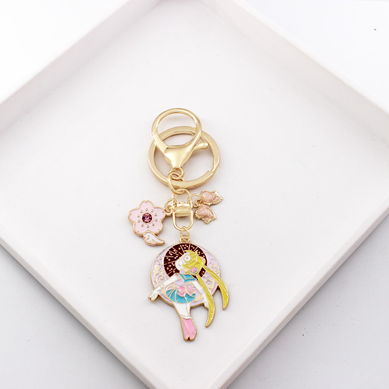 만화 소녀 전사 열쇠 고리 고양이 애니메이션 소녀 분말 합금 펜던트 귀여운 소녀 가방 펜던트스토어 가기
