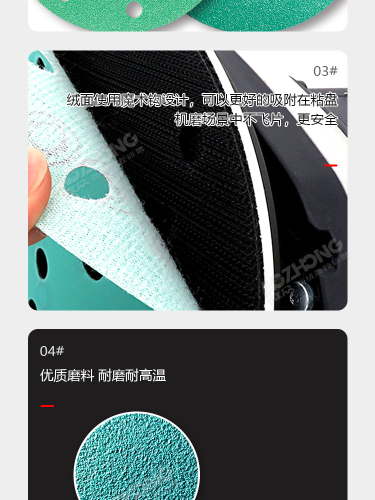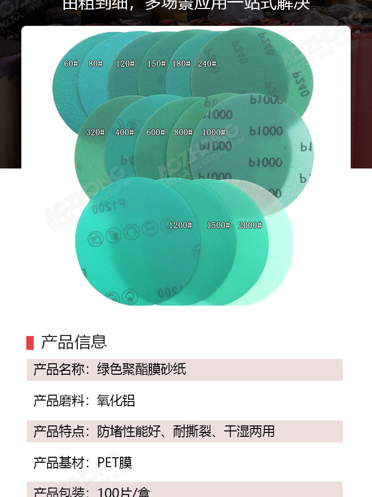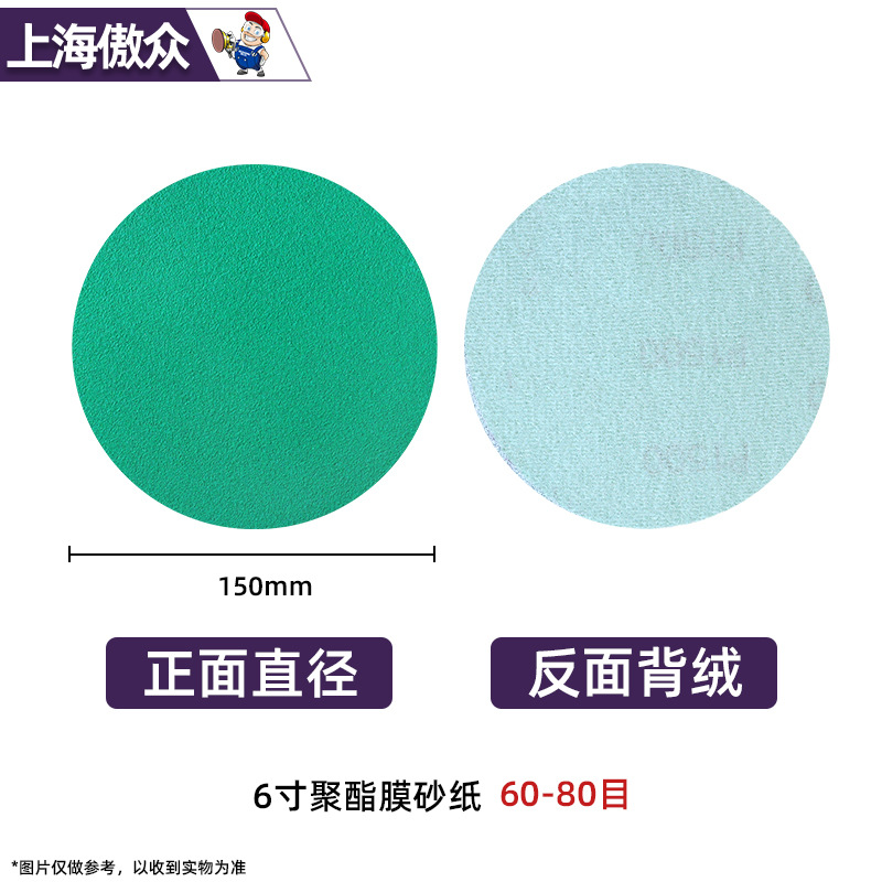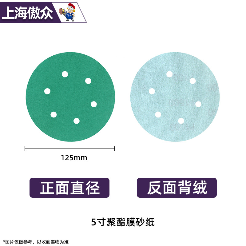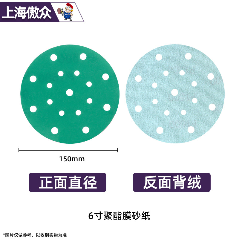 맞춤형 폴리에스터 필름 사포 녹색 건식 및 습식 연마 다공성 먼지 배출 비폐쇄형 플로킹 사이클론 홀스토어 가기