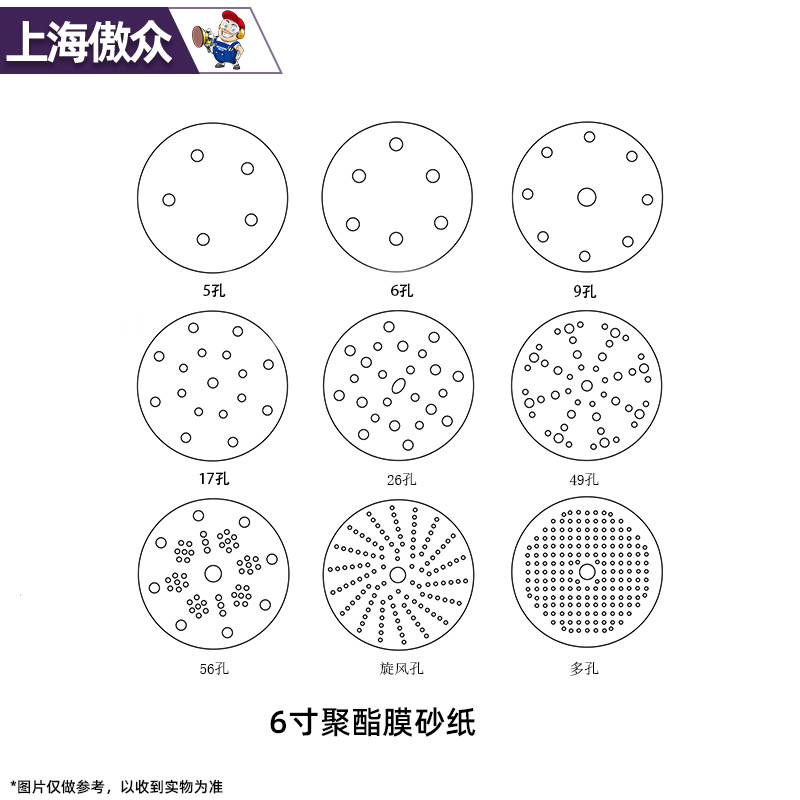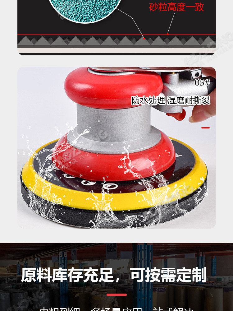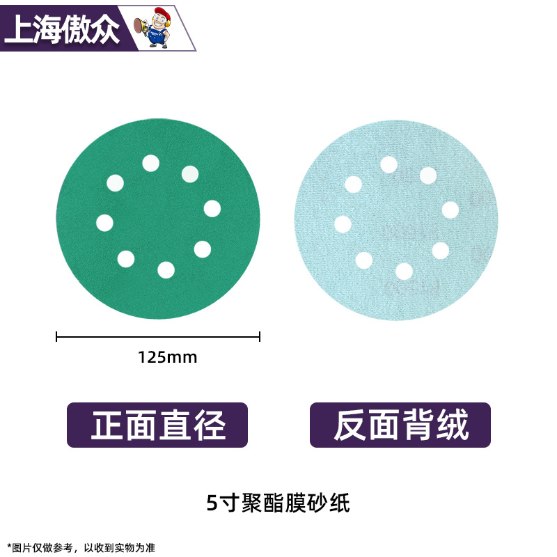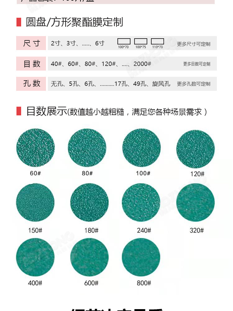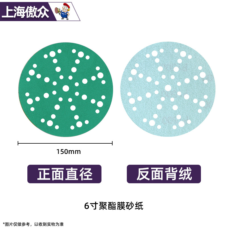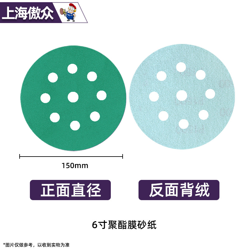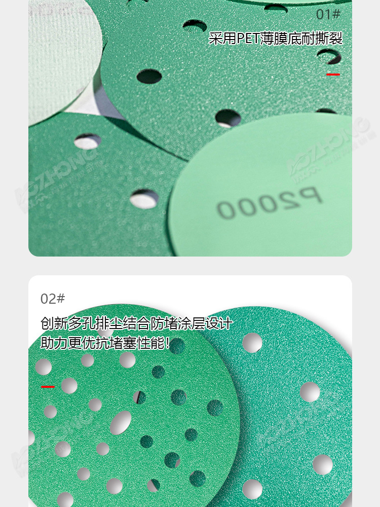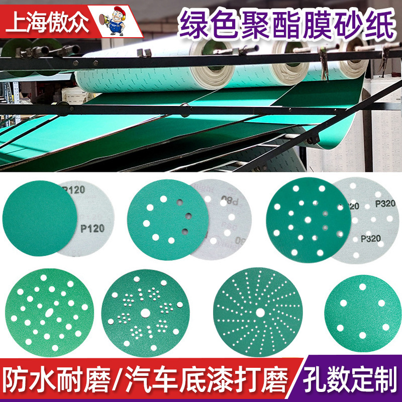 맞춤형 폴리에스터 필름 사포 녹색 건식 및 습식 연마 다공성 먼지 배출 비폐쇄형 플로킹 사이클론 홀