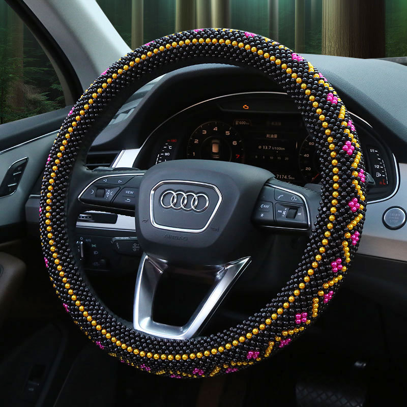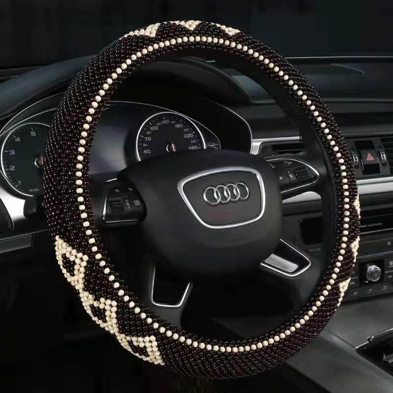 손으로 짠 사계절 유니버설 논슬립 통기성 [골드 비즈 우드 비즈 시리즈] 자동차 여름 비즈 핸들 커버