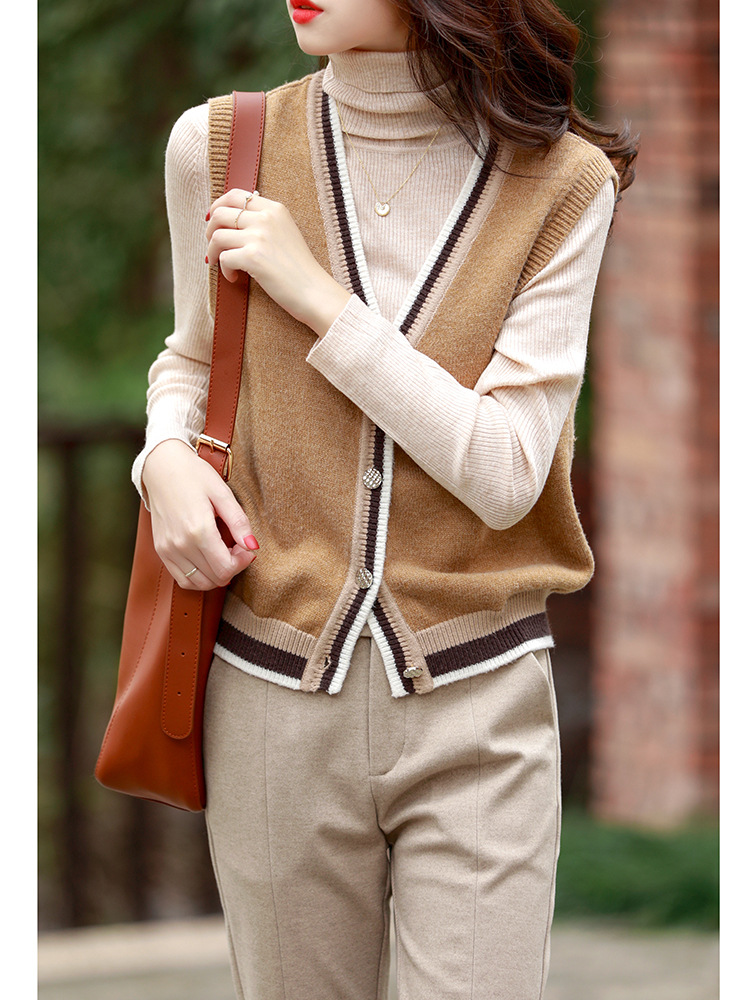 이른 가을 2022 새로운 패션 울 짧은 조끼 민소매 V-넥 스택 니트 카디건 조끼 여성용스토어 가기