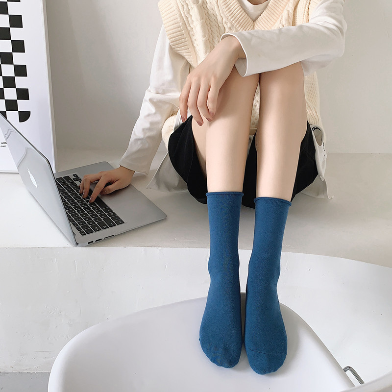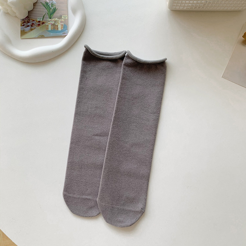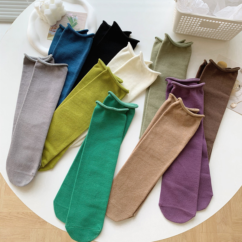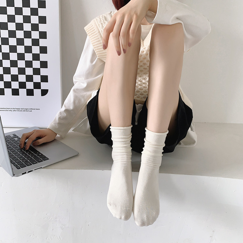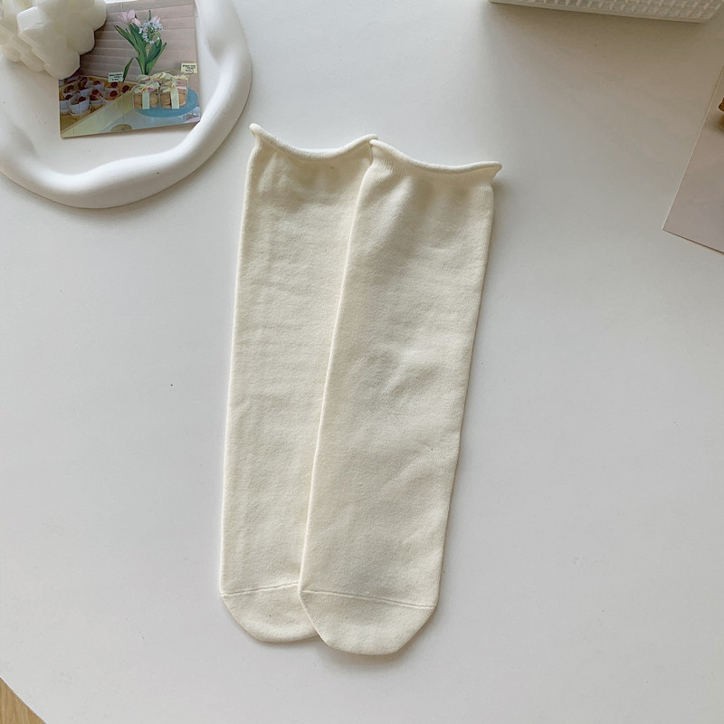 한국 in 스타일 단색 모든 일치 면 양말 얇은 몰란디 스트레이트 플레이트 여성용 중간 길이 양말 200 핀 컬 스택스토어 가기