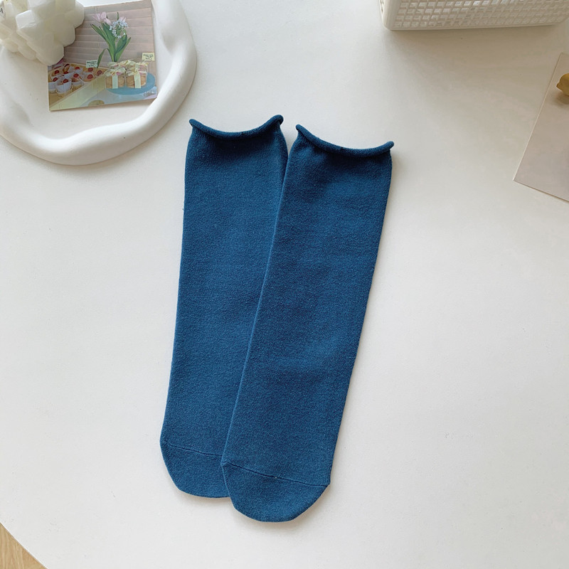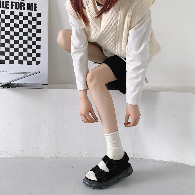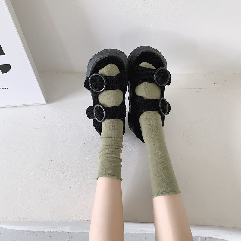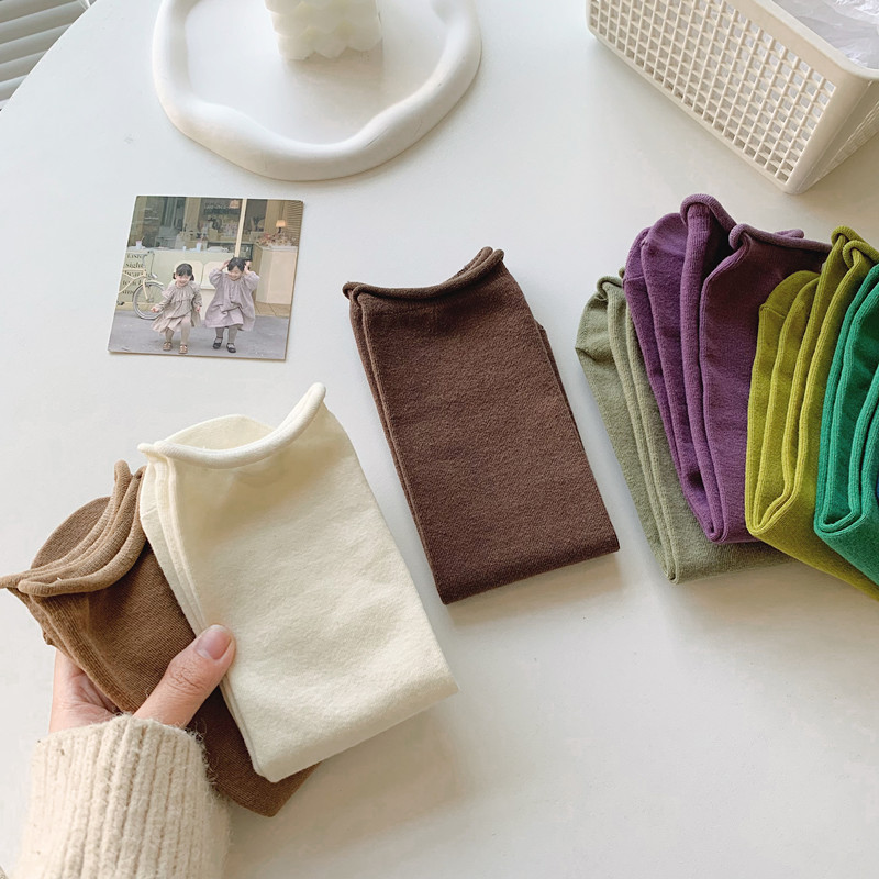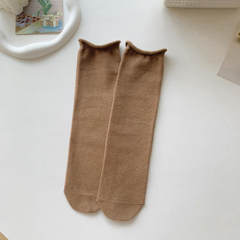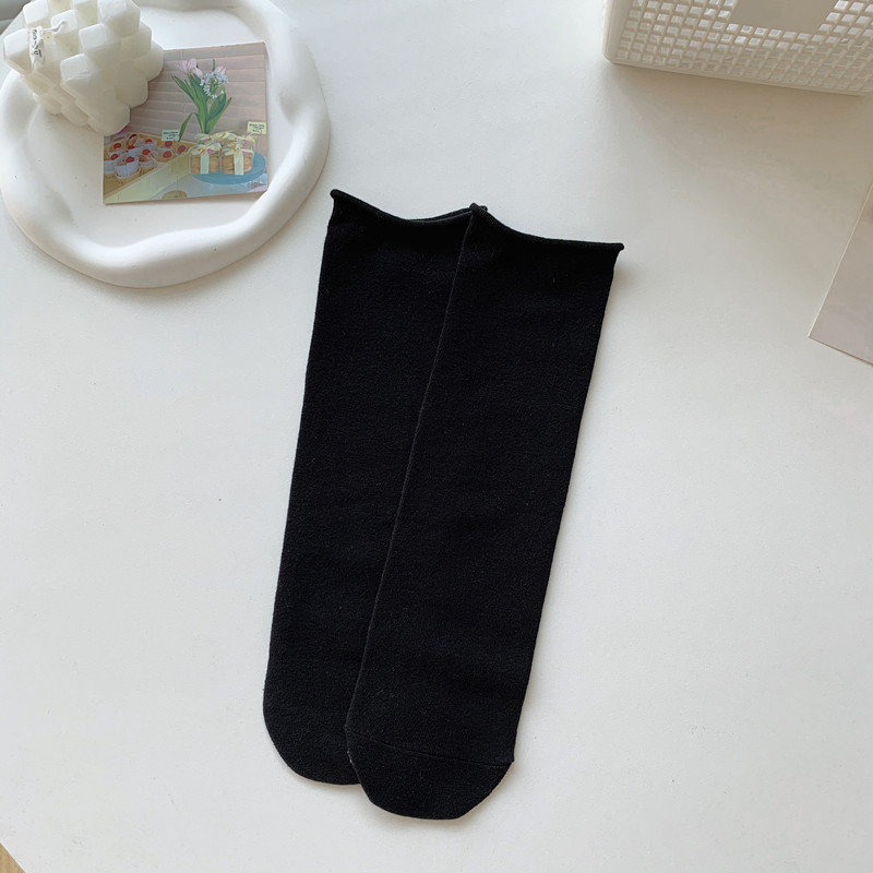 한국 in 스타일 단색 모든 일치 면 양말 얇은 몰란디 스트레이트 플레이트 여성용 중간 길이 양말 200 핀 컬 스택스토어 가기
