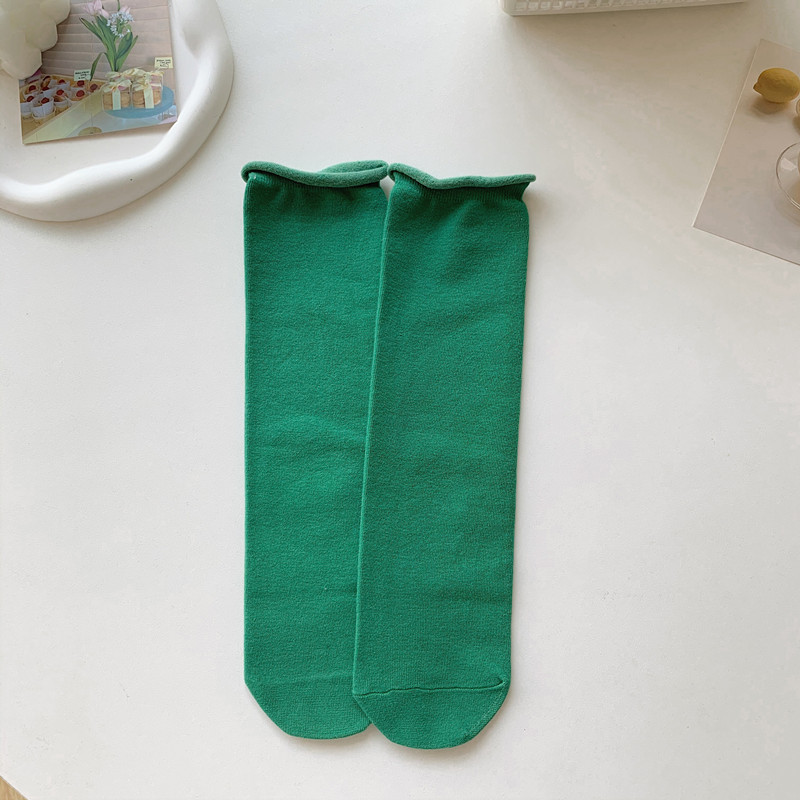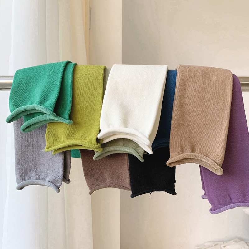 한국 in 스타일 단색 모든 일치 면 양말 얇은 몰란디 스트레이트 플레이트 여성용 중간 길이 양말 200 핀 컬 스택