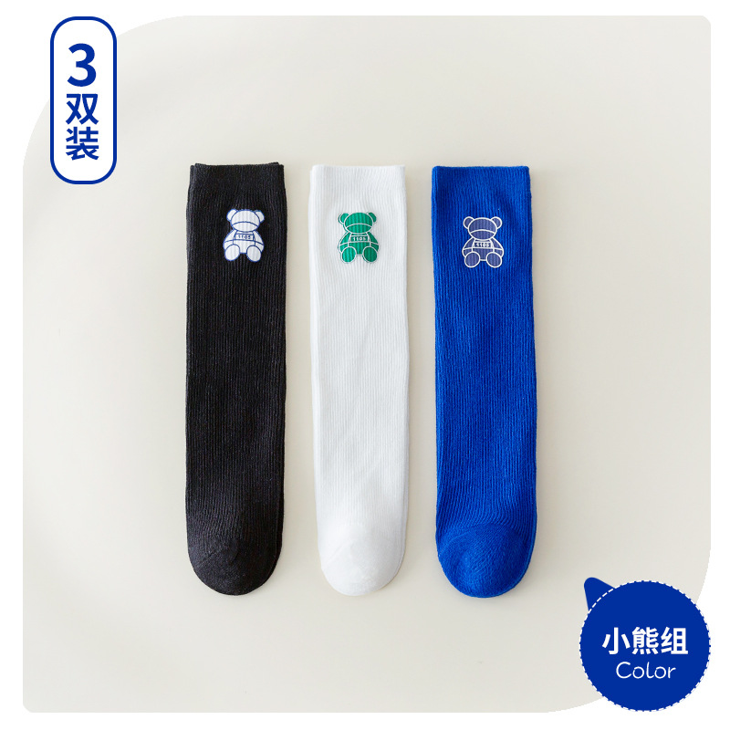 어린이 양말 2023 가을과 겨울 새로운 소년 소녀 더미 양말 한국 만화 곰 직선 플레이트 튜브 양말 세대스토어 가기