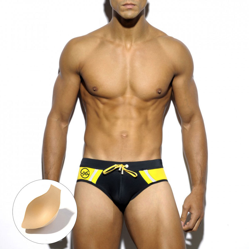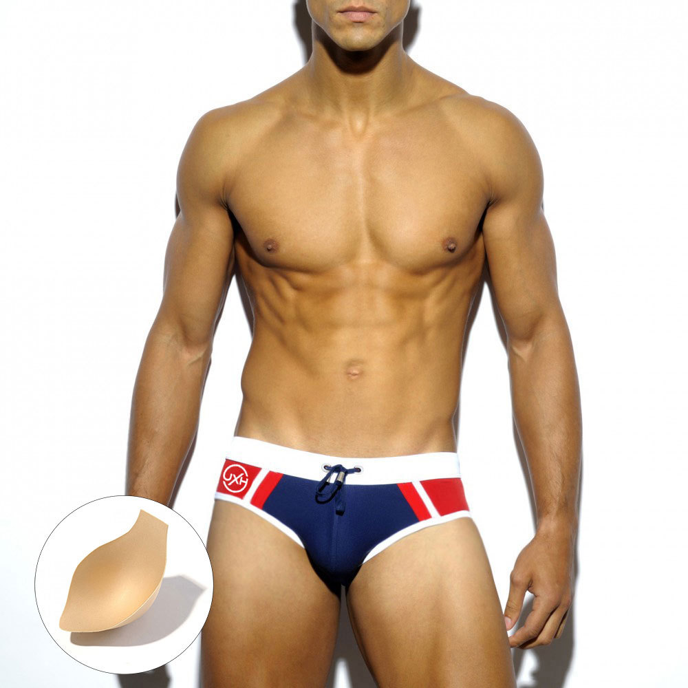 UXH 유럽과 미국의 남성 컬러 매칭 패션 트렌디 한 삼각형 수영 트렁크 비키니 수영복 컵 섹시한 수영 트렁크 남성