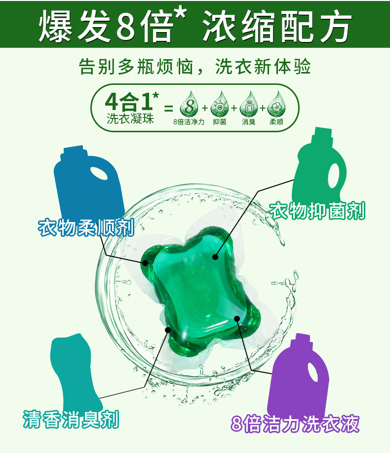 浓缩酵素洗衣凝珠三合一持久留香洗衣液洗衣机专用50颗盒装洗衣球