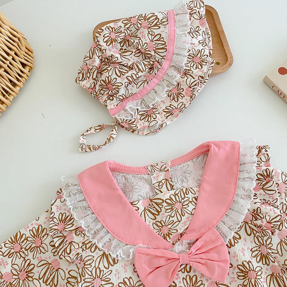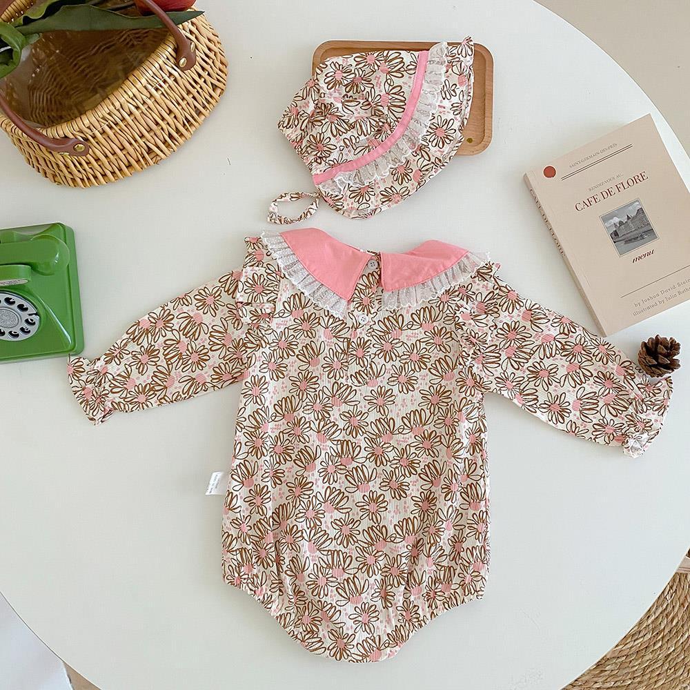 여성 아기 봄과 가을 긴팔 점프 수트 한국식 아기 스타일 공주 세트 신생아 아기 가방 방귀 등반 세트