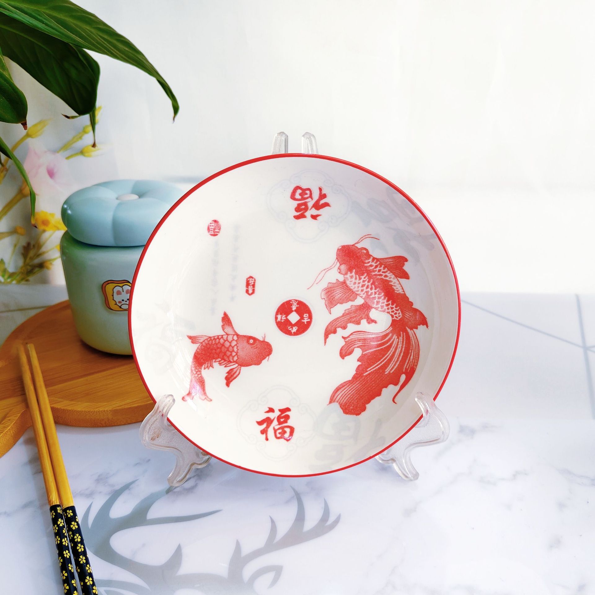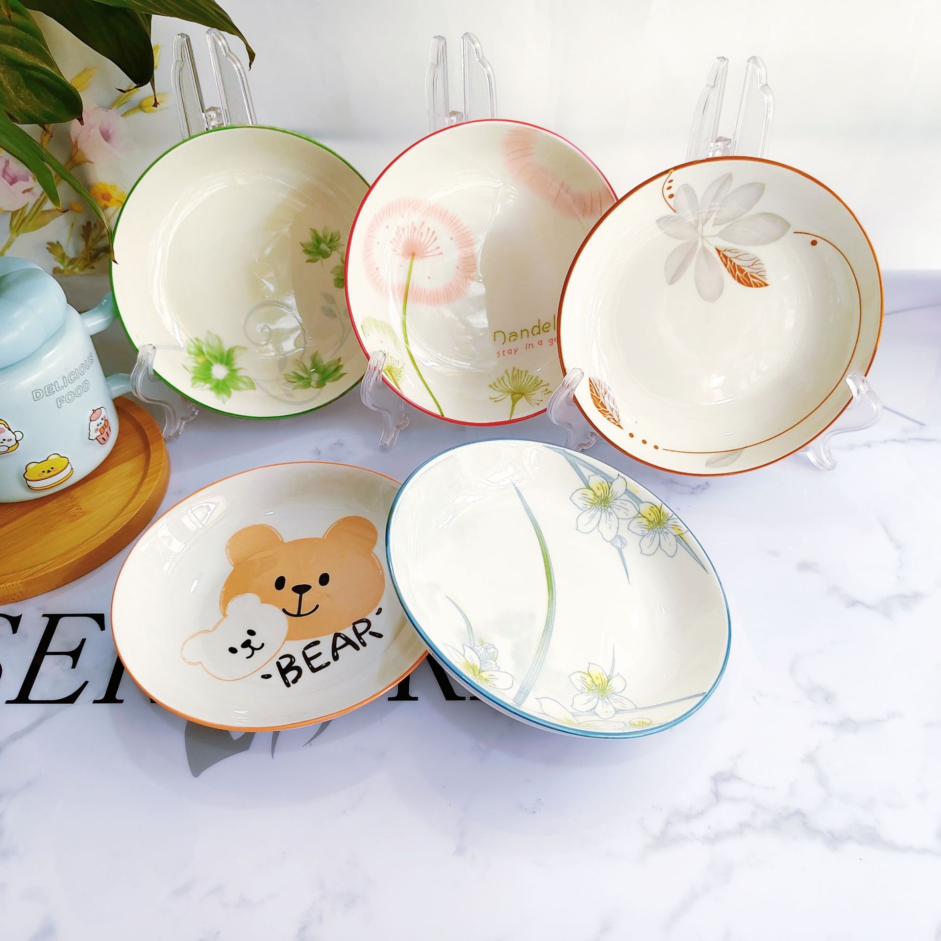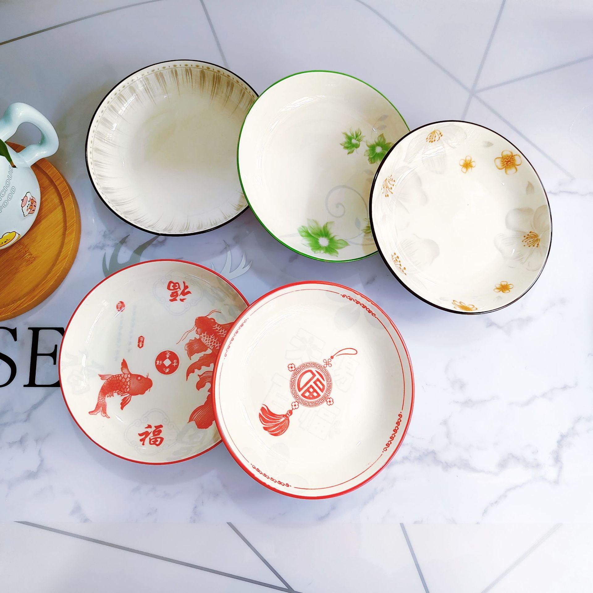 간단한 세라믹 인쇄 6.25 과일 플레이트 창조적 인 세라믹 플레이트 가정용 세라믹 호텔 도매 세라믹 플레이트 1 차 공급스토어 가기