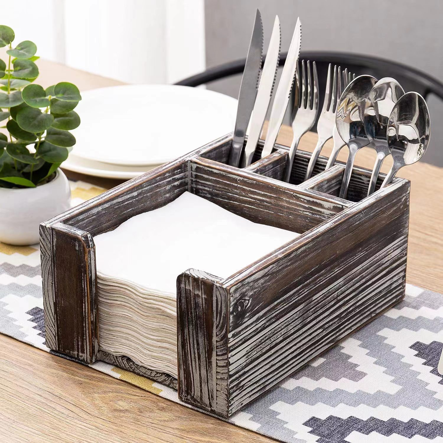 나무 크리 에이 티브 홈 주방 데스크탑 냅킨 종이 상자 주방 레스토랑 칼 포크 젓가락 식기 보관 상자스토어 가기