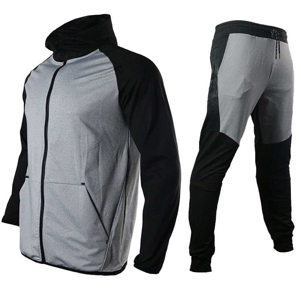 유럽과 미국 크로스 보더 봄과 가을 후드 느슨한 재킷 바지 스티치 대비 색상 스웨터 남성 스포츠웨어 캐주얼 세트