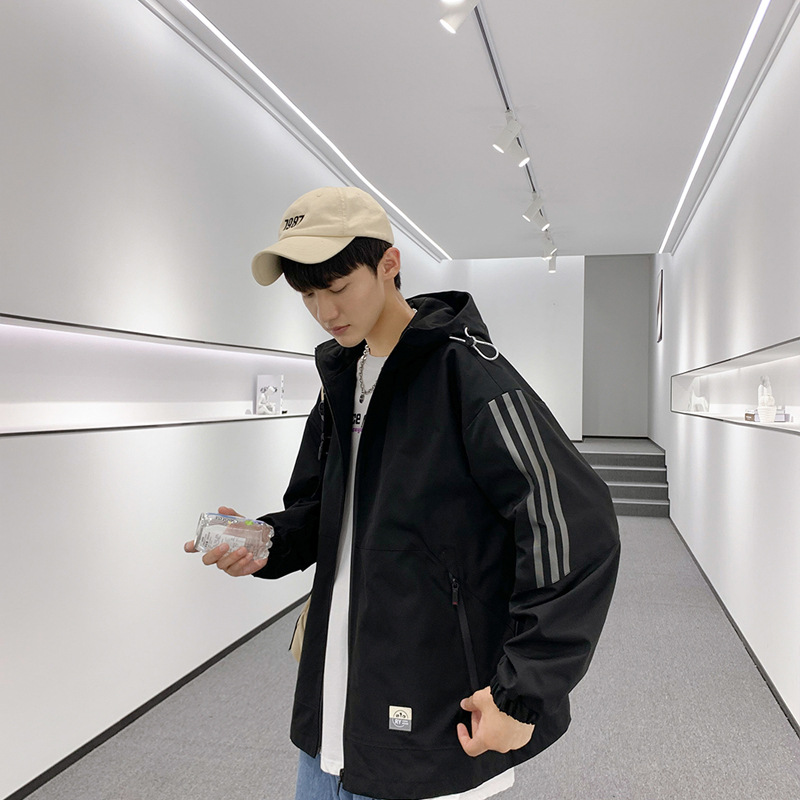 재킷 남자의 봄과 가을 플러스 비료 플러스 사이즈 트렌디 브랜드 스티칭 작업 재킷 느슨한 플러스 사이즈 캐주얼 후드 의류 남성 의류스토어 가기
