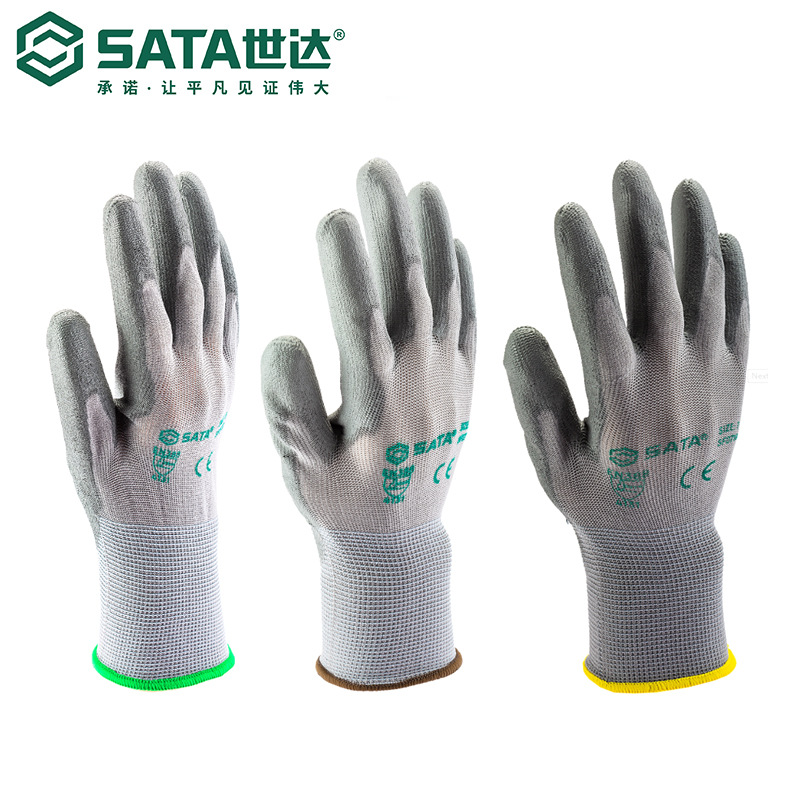 사타/시다 노동 보호 용품 PU 장갑 7/8/9 그레이 팜 소크 SF0718/SF0719/SF0720