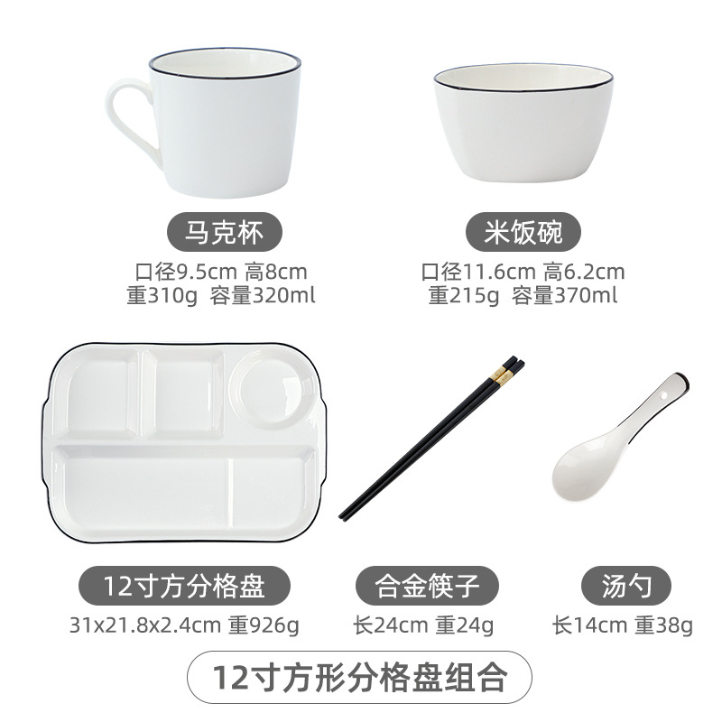 유전체 지방 감소 디너 플레이트 1 인 가정용 아침 식사 식기 어린이 정량적 북유럽 3 구획 세라믹 디너 플레이트 세트스토어 가기