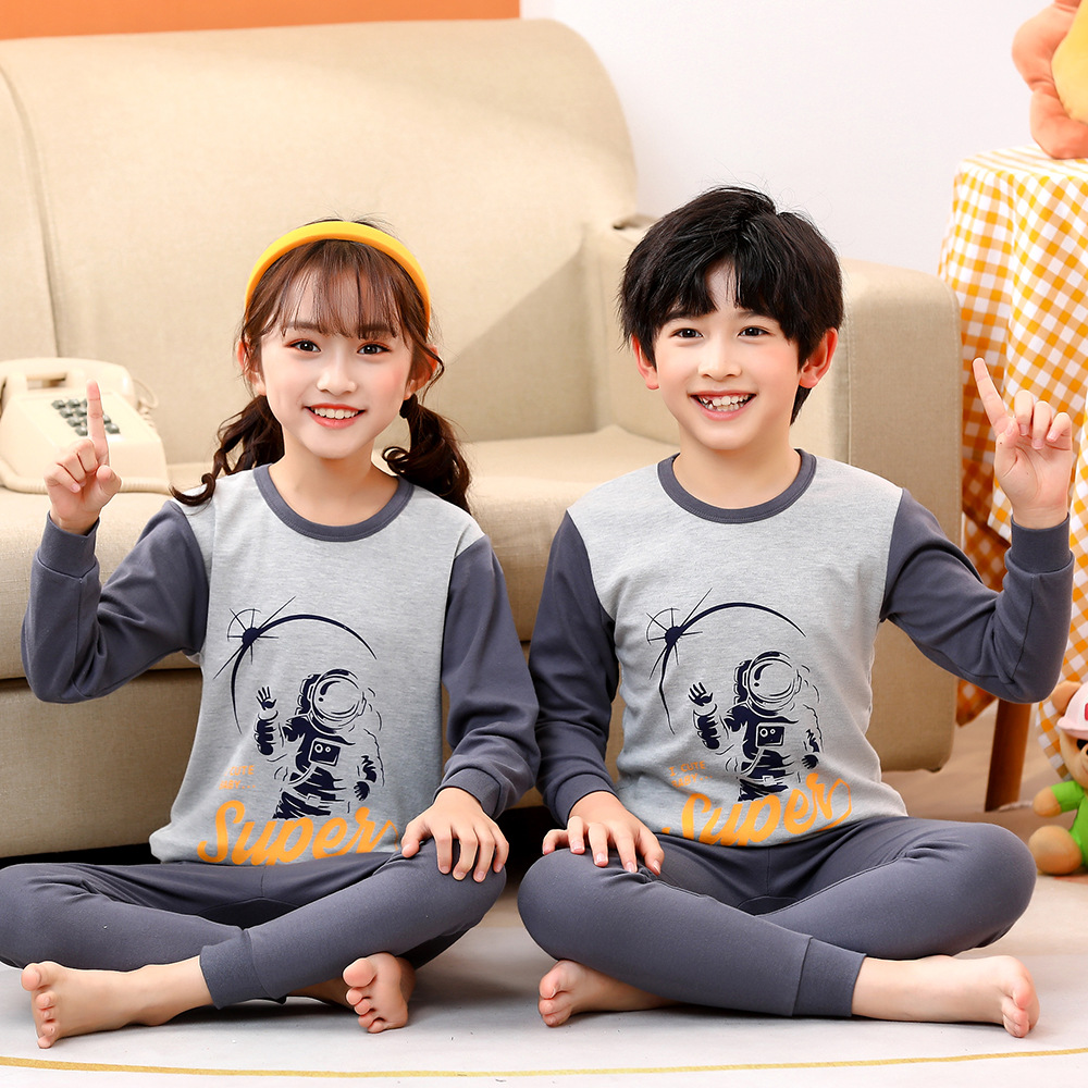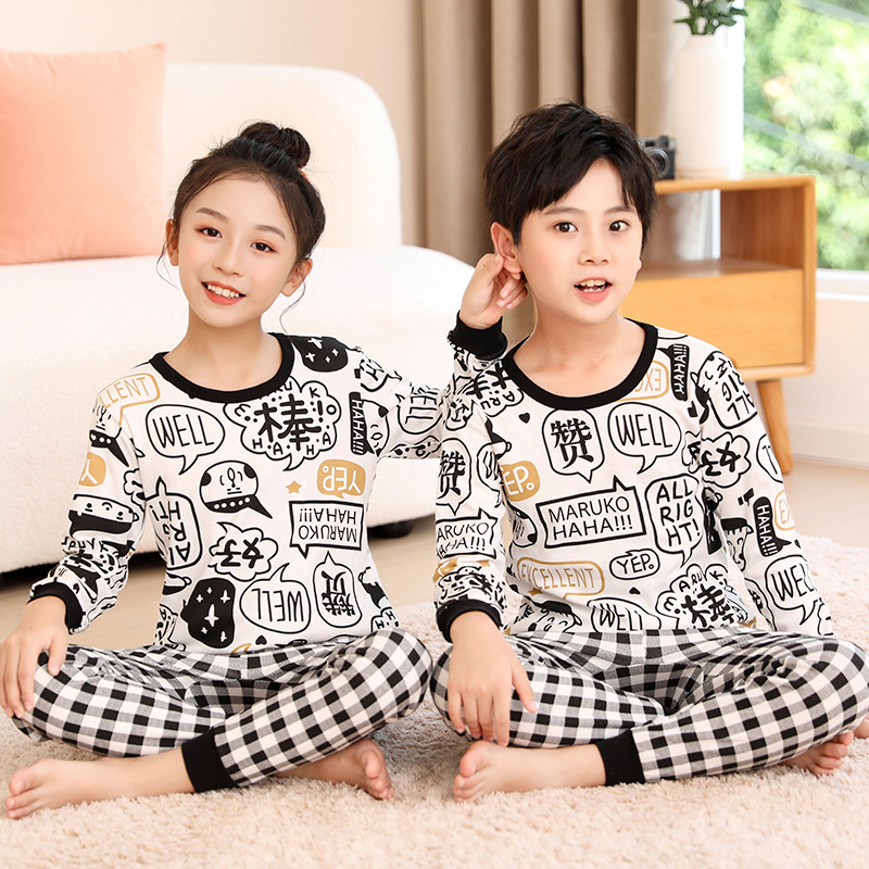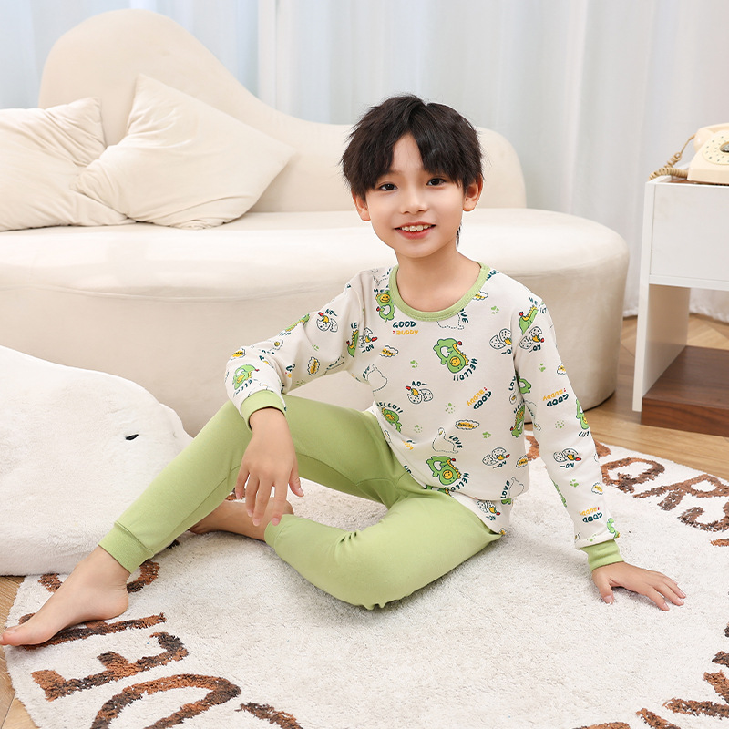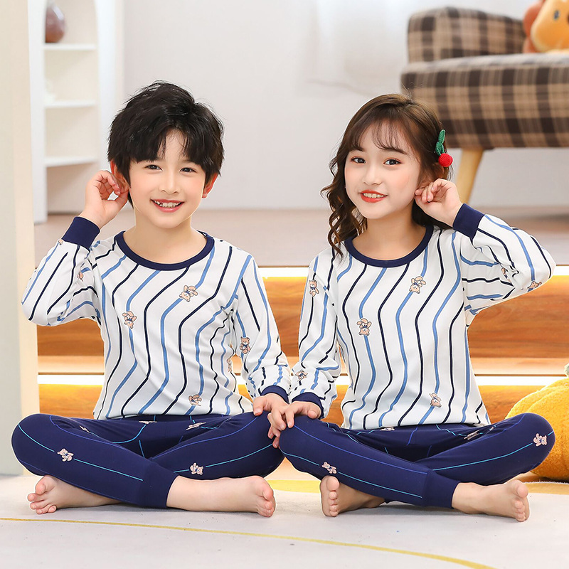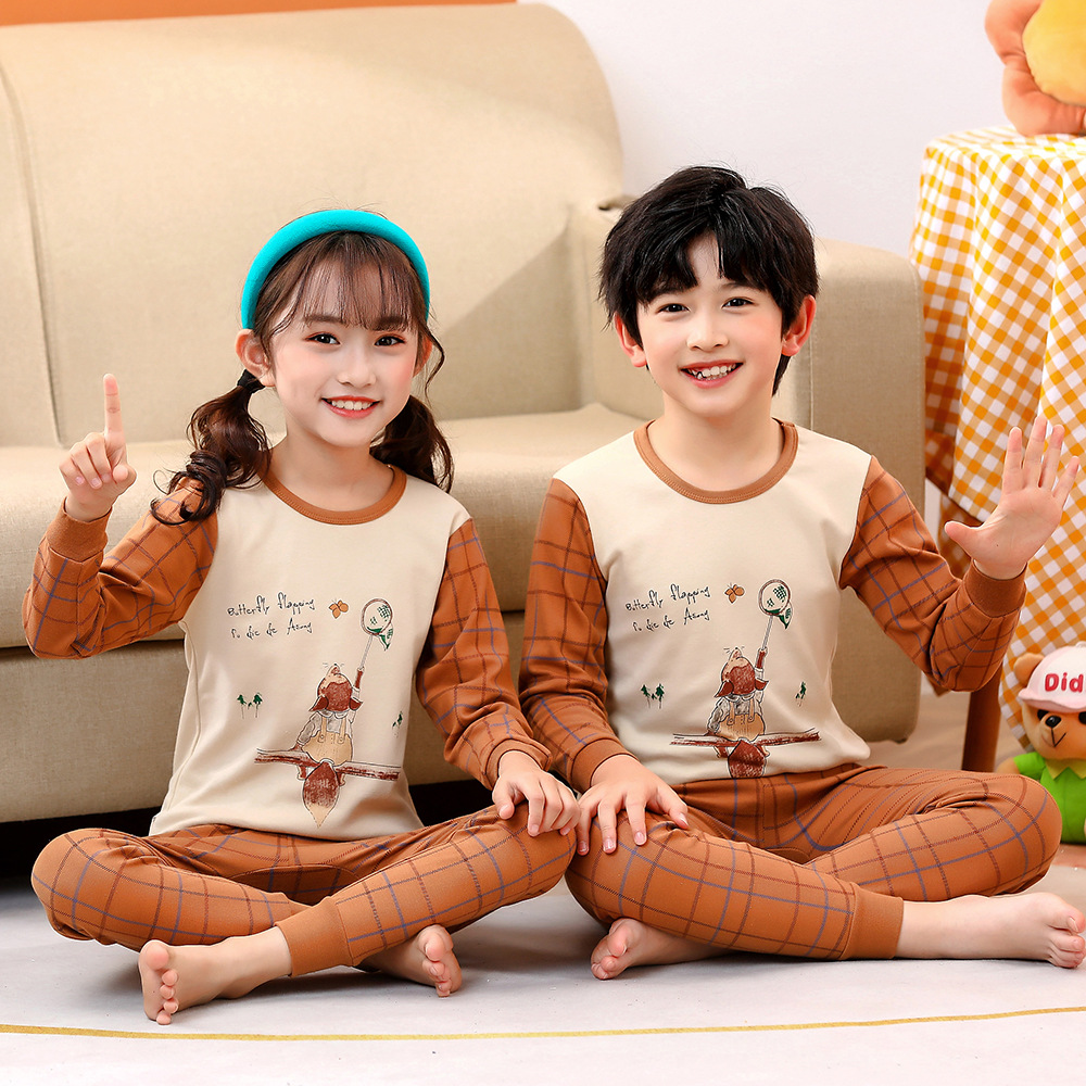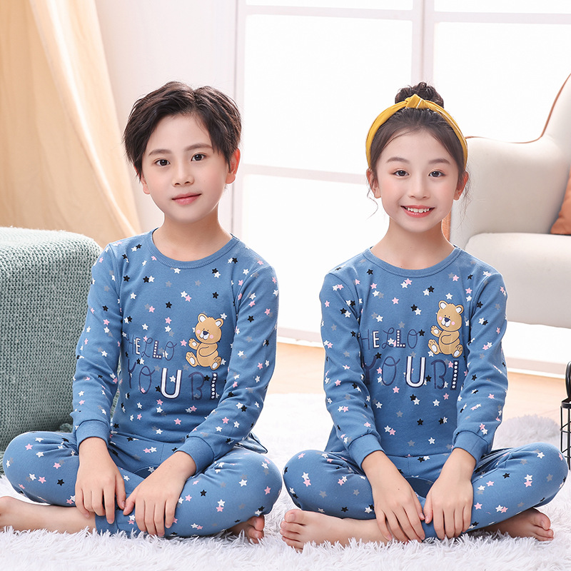 2024 가을, 겨울 어린이 면화 긴팔 가정 의류 세트 멀티 컬러 인쇄 소년과 소녀 따뜻한 속옷 도매 배송