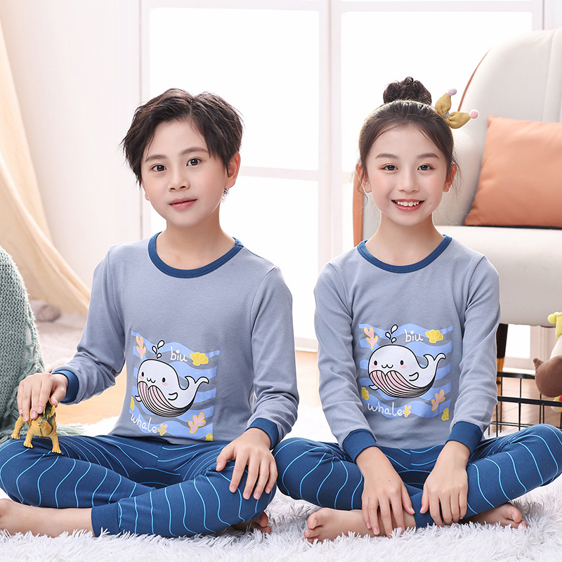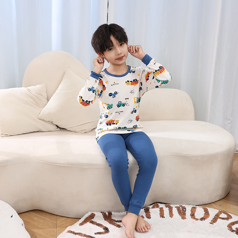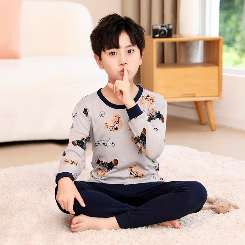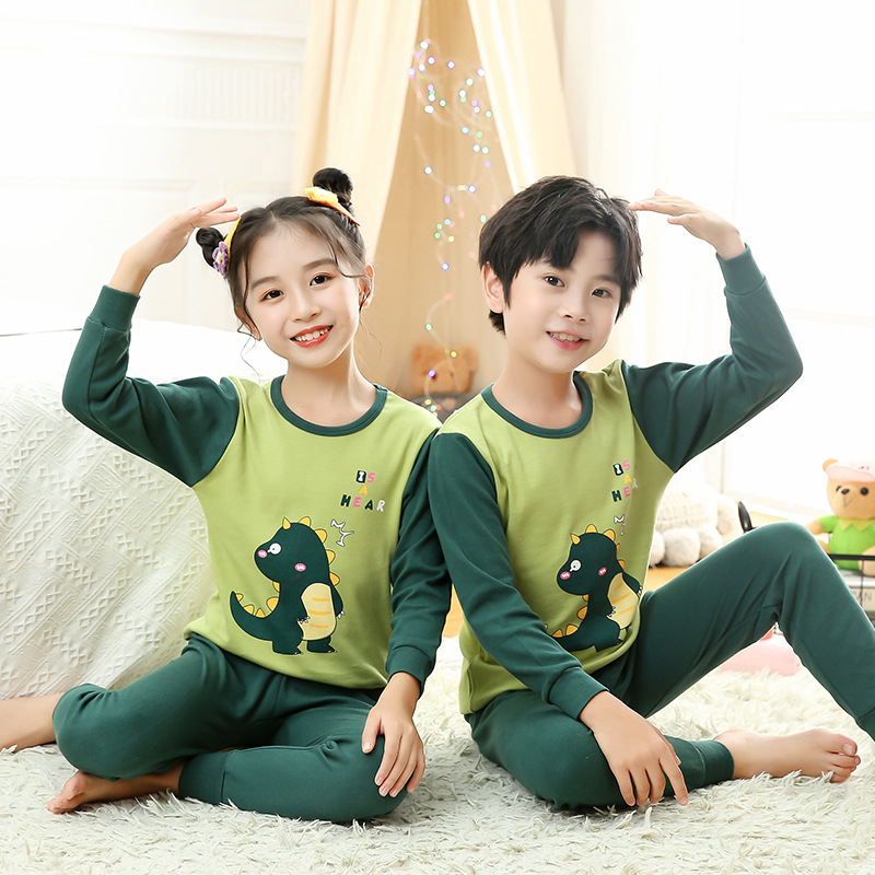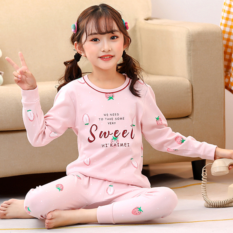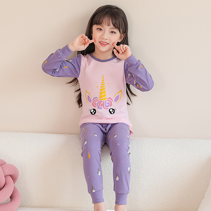 2024 가을, 겨울 어린이 면화 긴팔 가정 의류 세트 멀티 컬러 인쇄 소년과 소녀 따뜻한 속옷 도매 배송