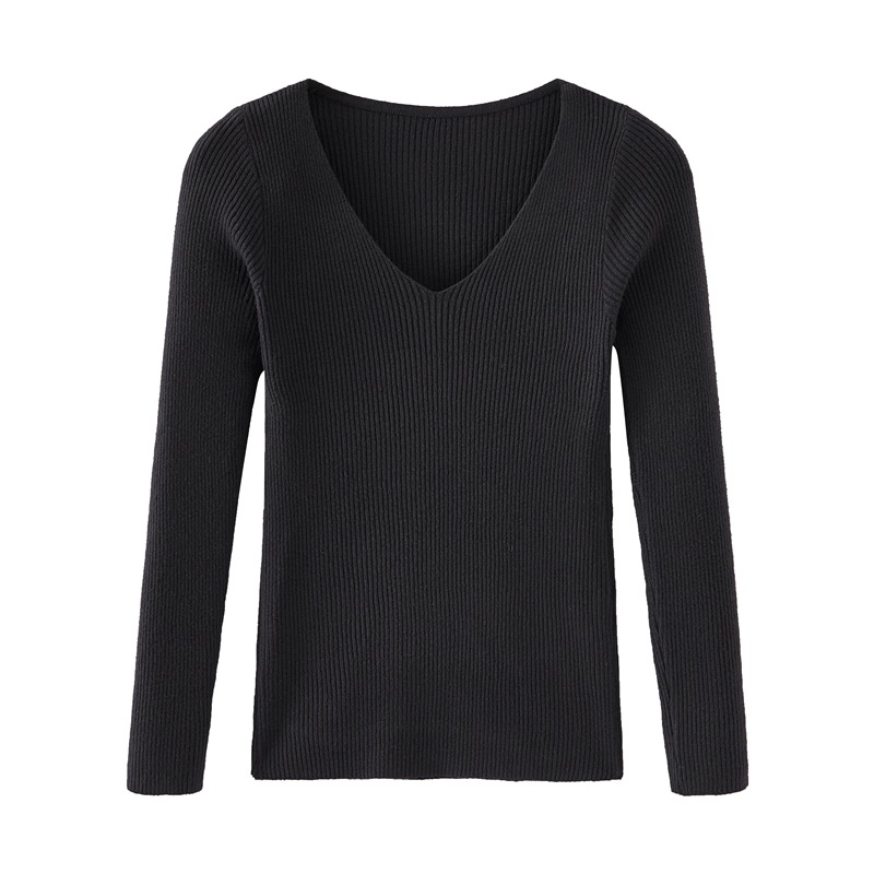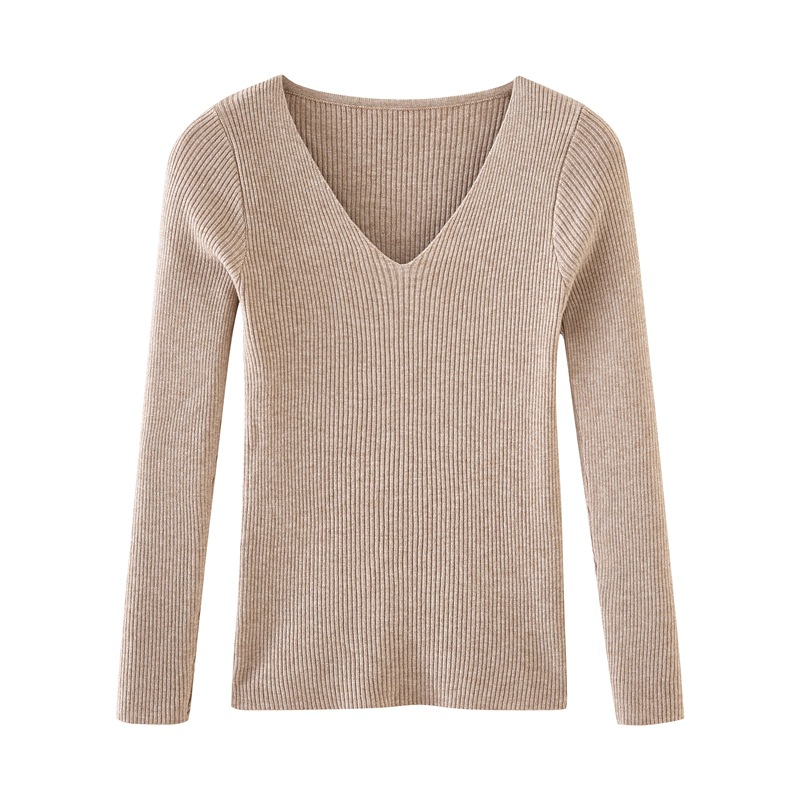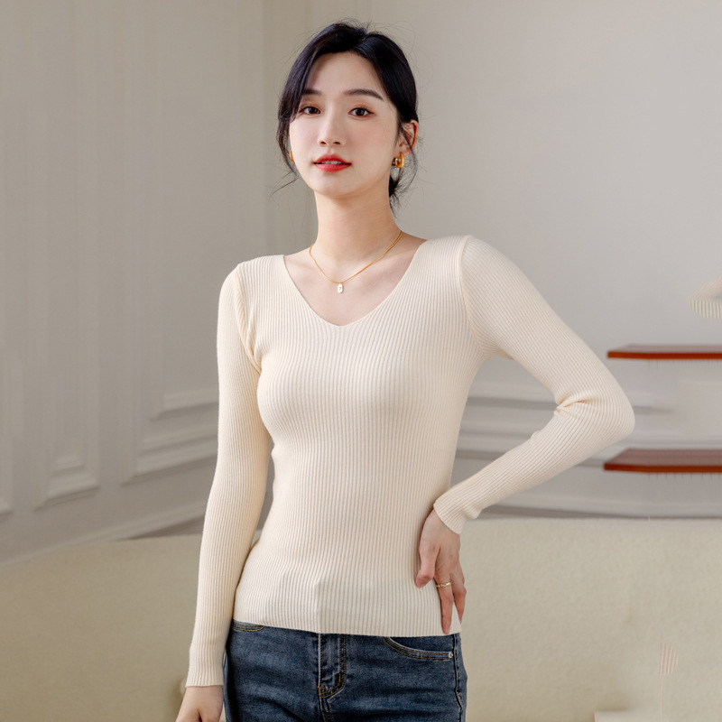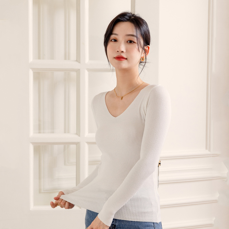 가을과 겨울 빈티지 풀오버 V넥 니트 셔츠 긴팔 슬림핏 따뜻한 베이스 셔츠 탑 슬리밍 만능 스웨터 여성용 트렌디