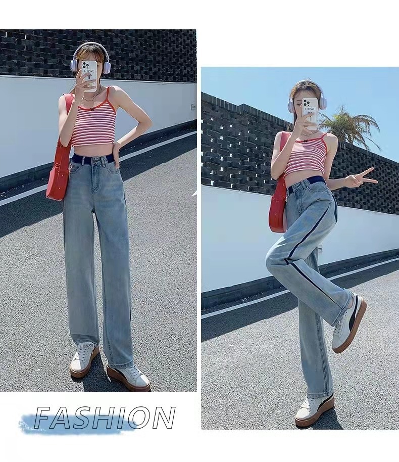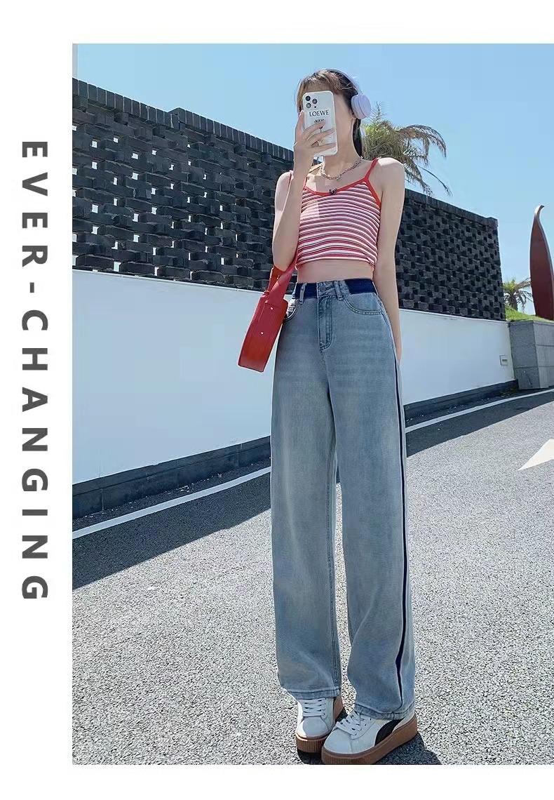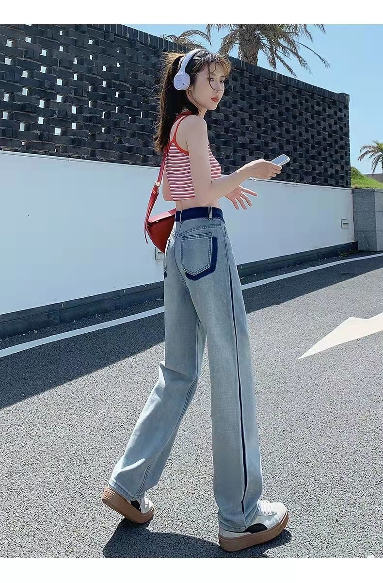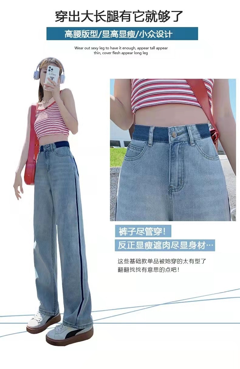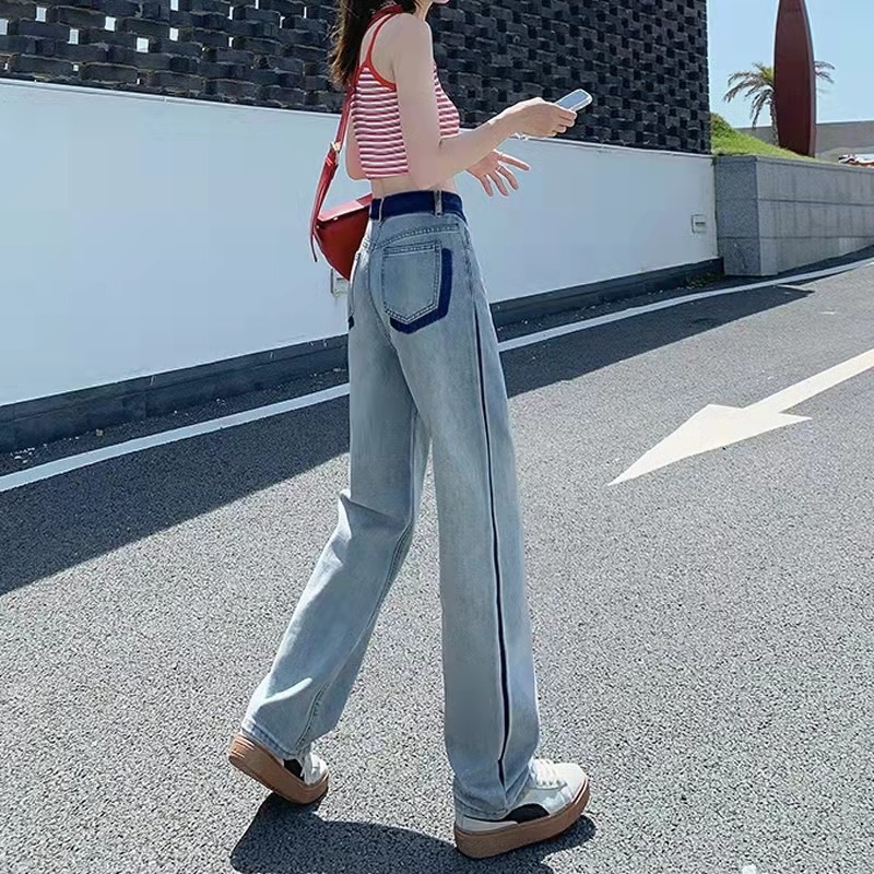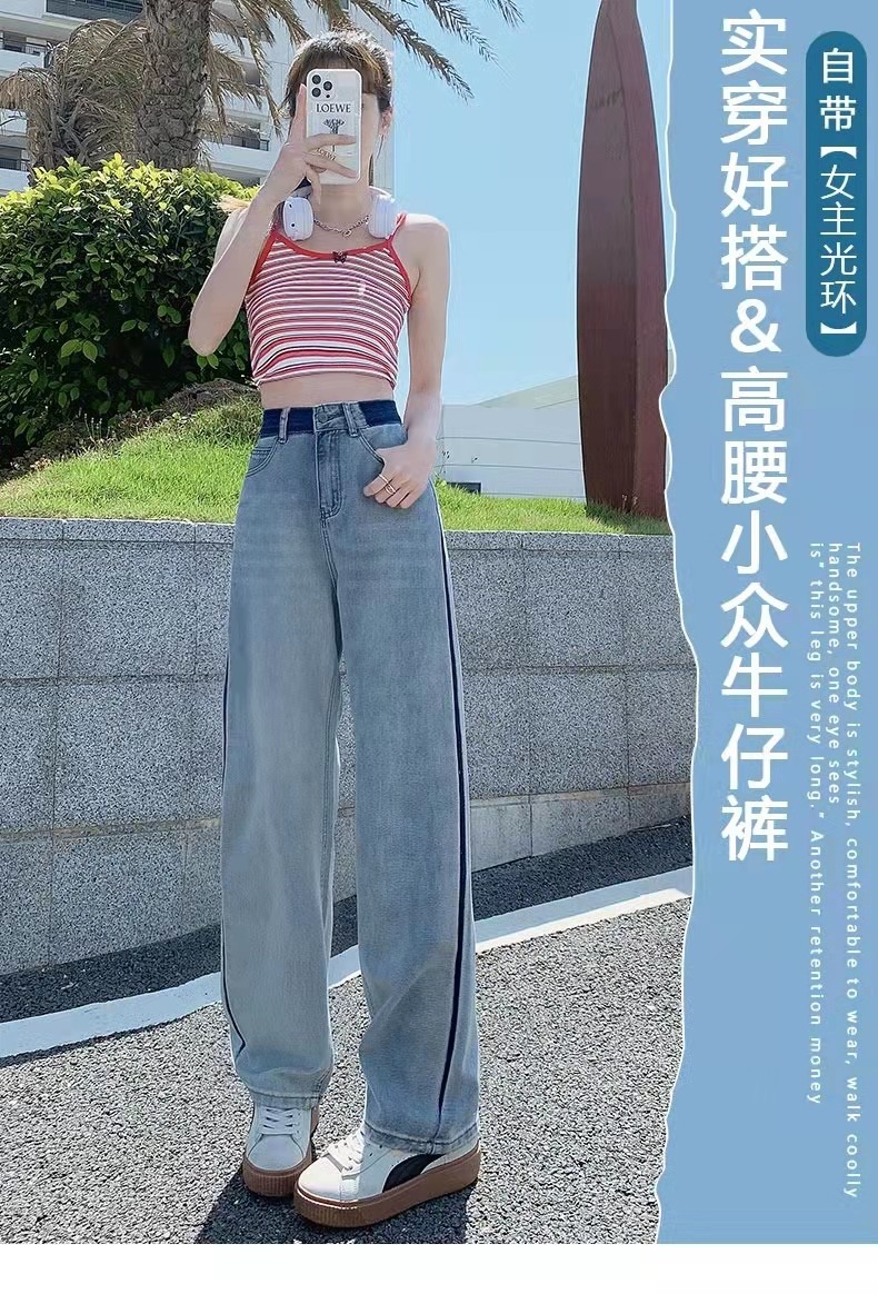 네트워크 그림 2022 새로운 하이 웨이스트 스트레이트 레그 팬츠 봄과 여름 얇은 느슨한 슬리밍 디자인 감각 틈새 와이드 레그 플로어 팬츠스토어 가기