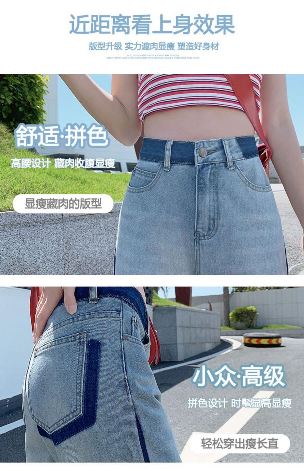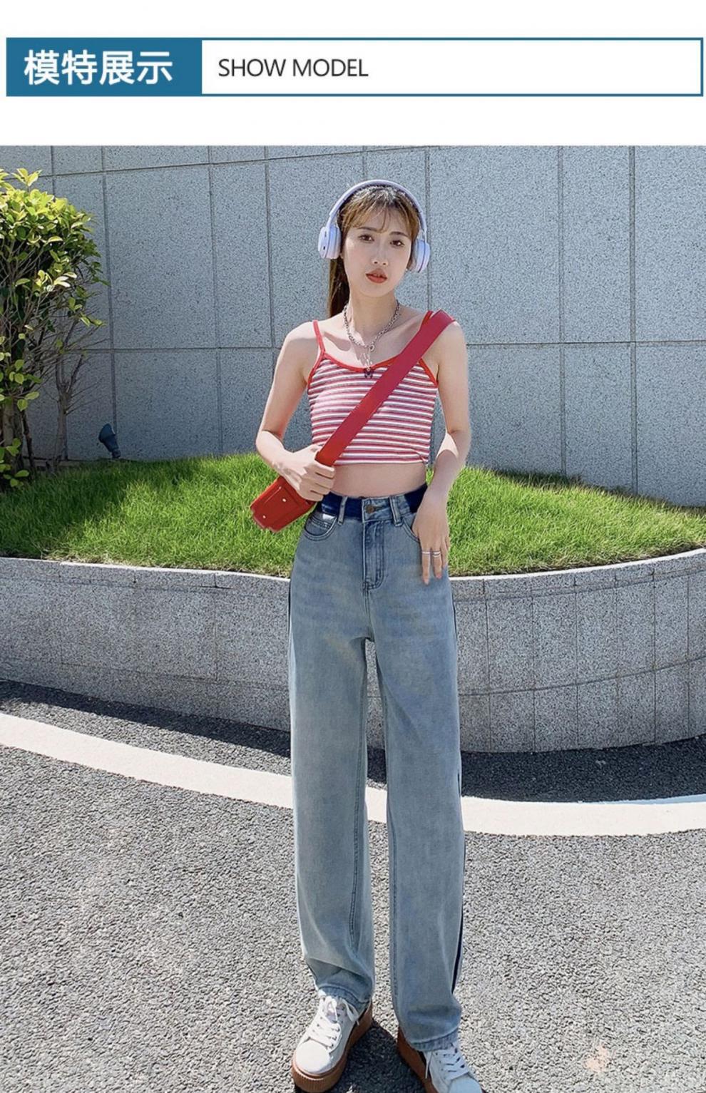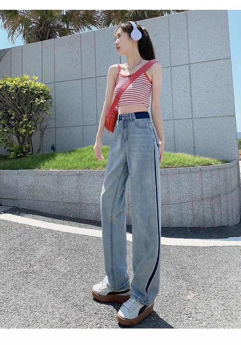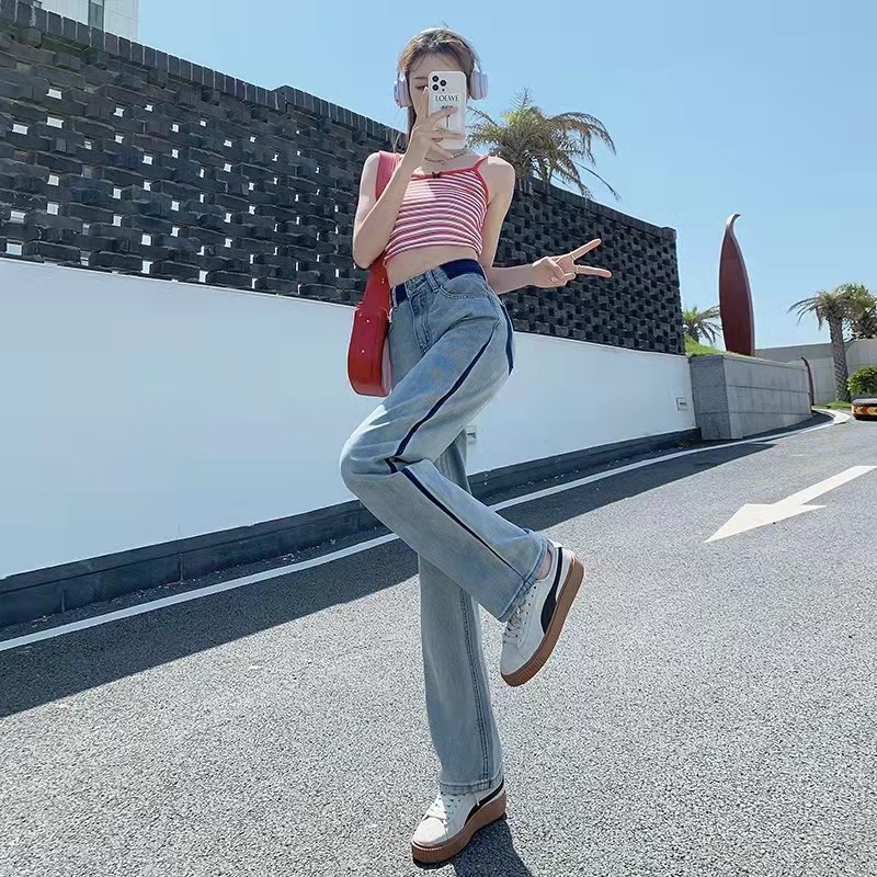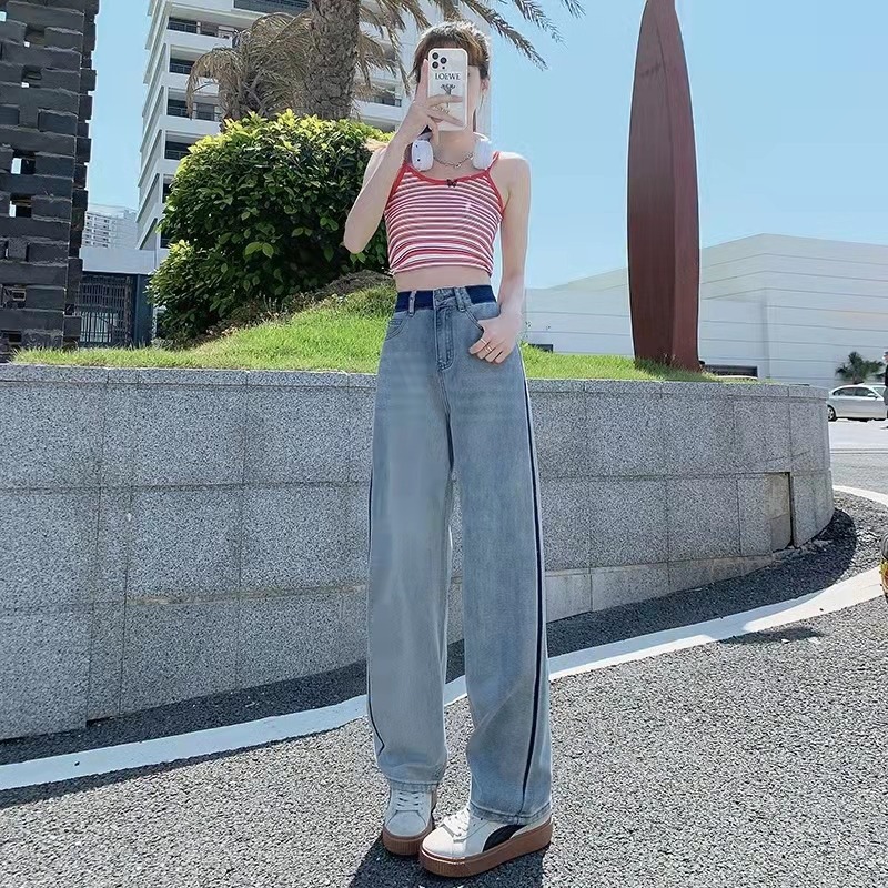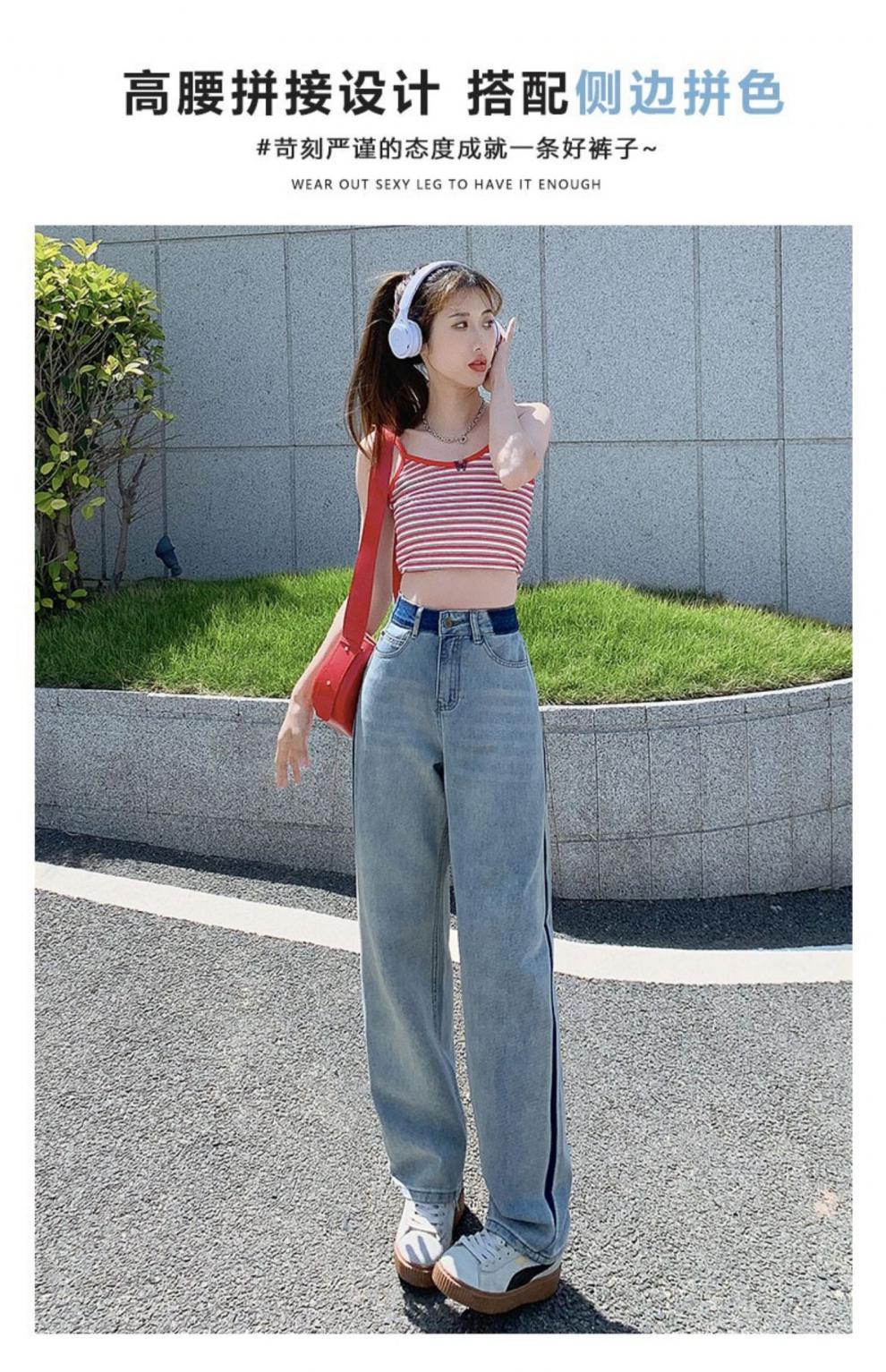 네트워크 그림 2022 새로운 하이 웨이스트 스트레이트 레그 팬츠 봄과 여름 얇은 느슨한 슬리밍 디자인 감각 틈새 와이드 레그 플로어 팬츠스토어 가기