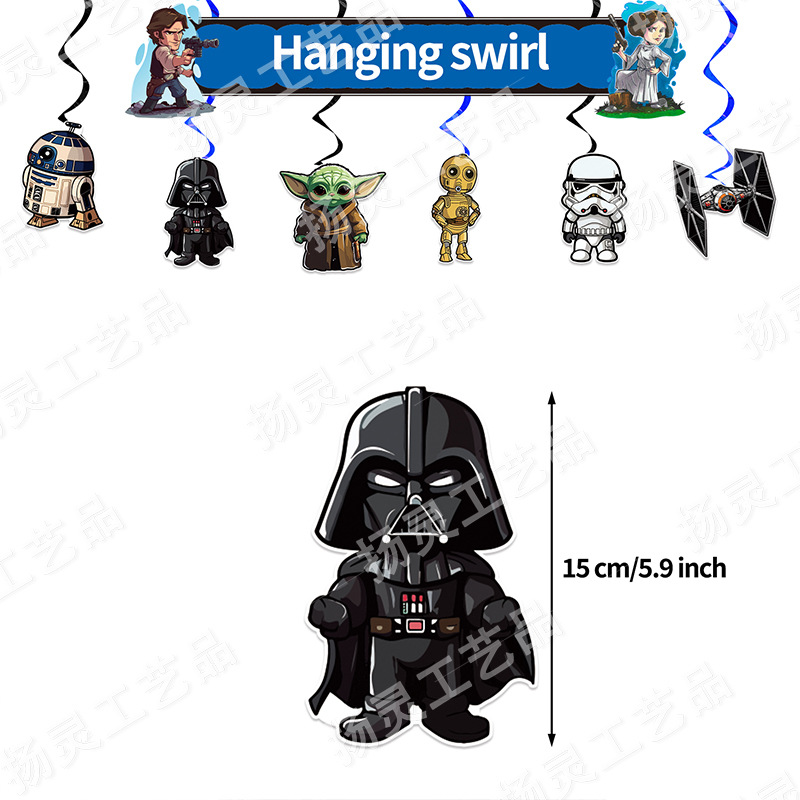 1 set Party Spirals Decor (6 Hanging Cards+6 Single Spirals: 3 Blue and 3 Black)