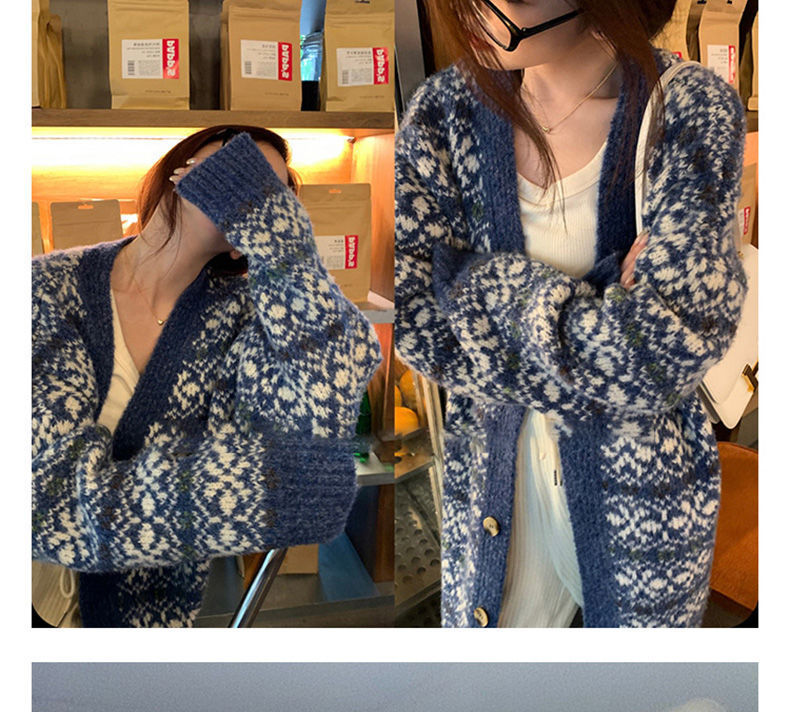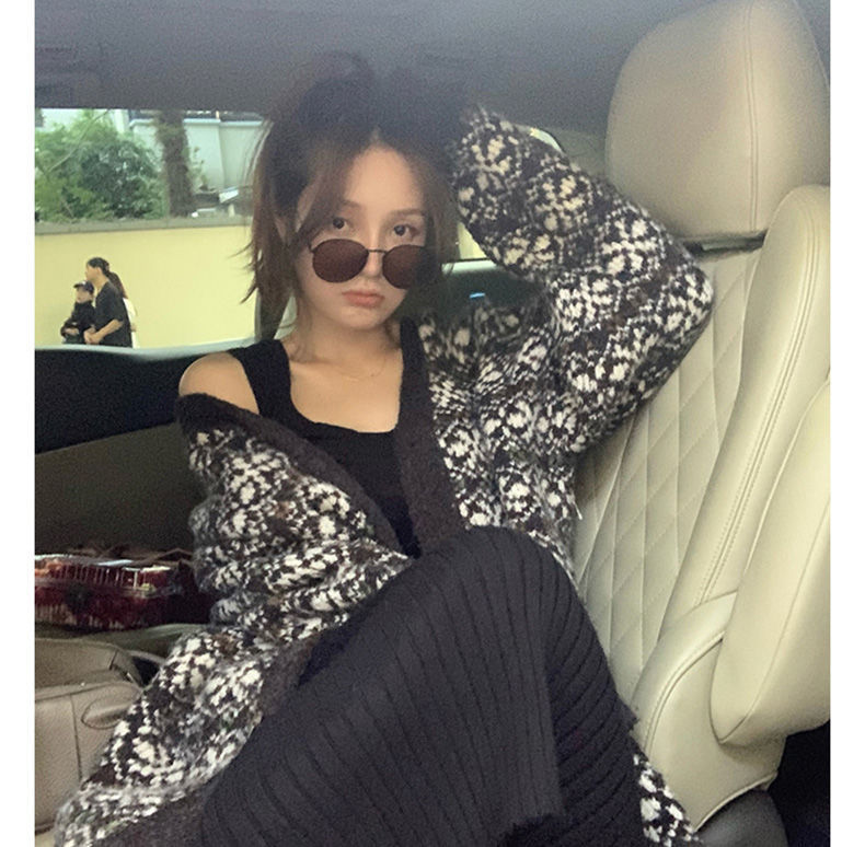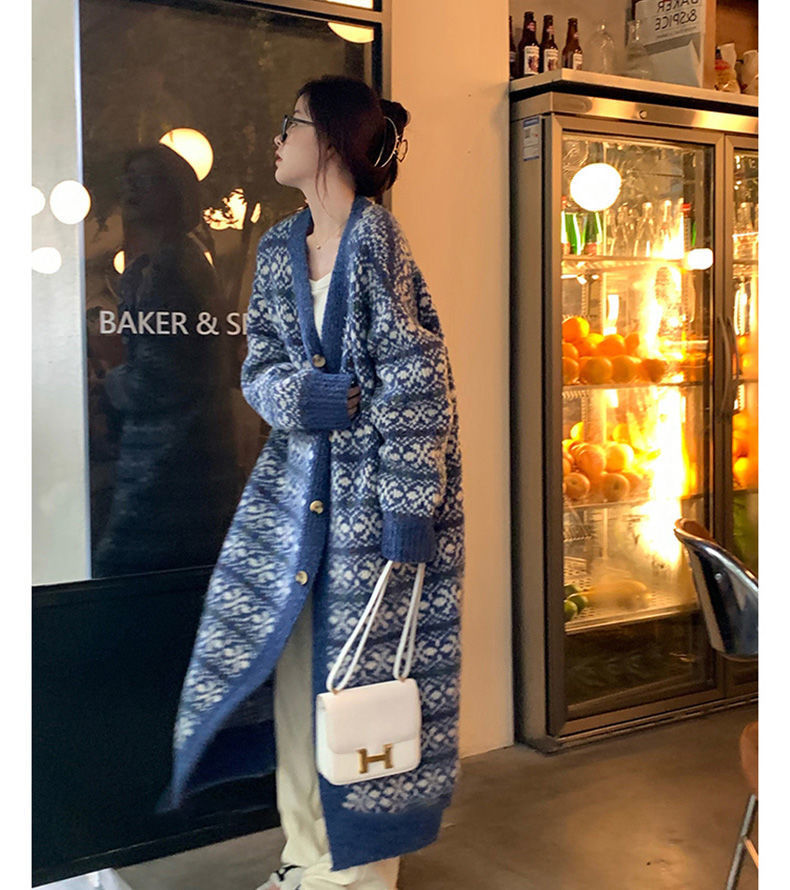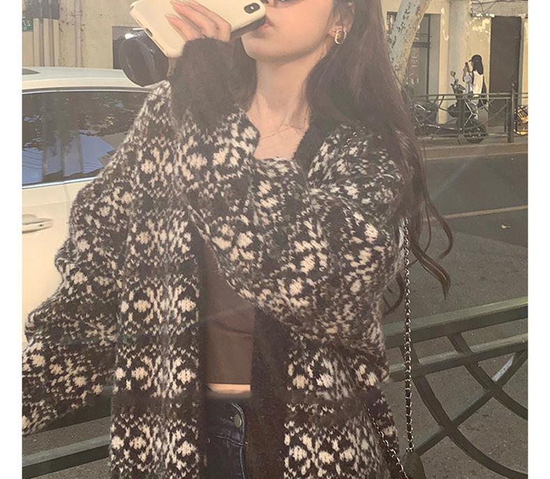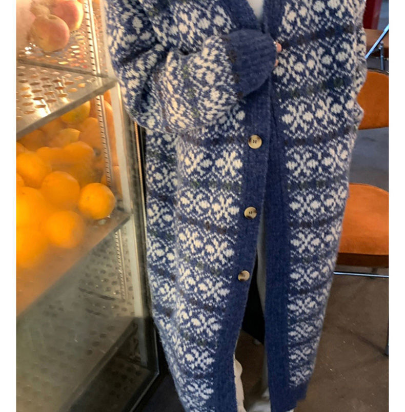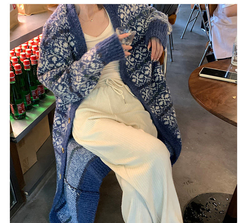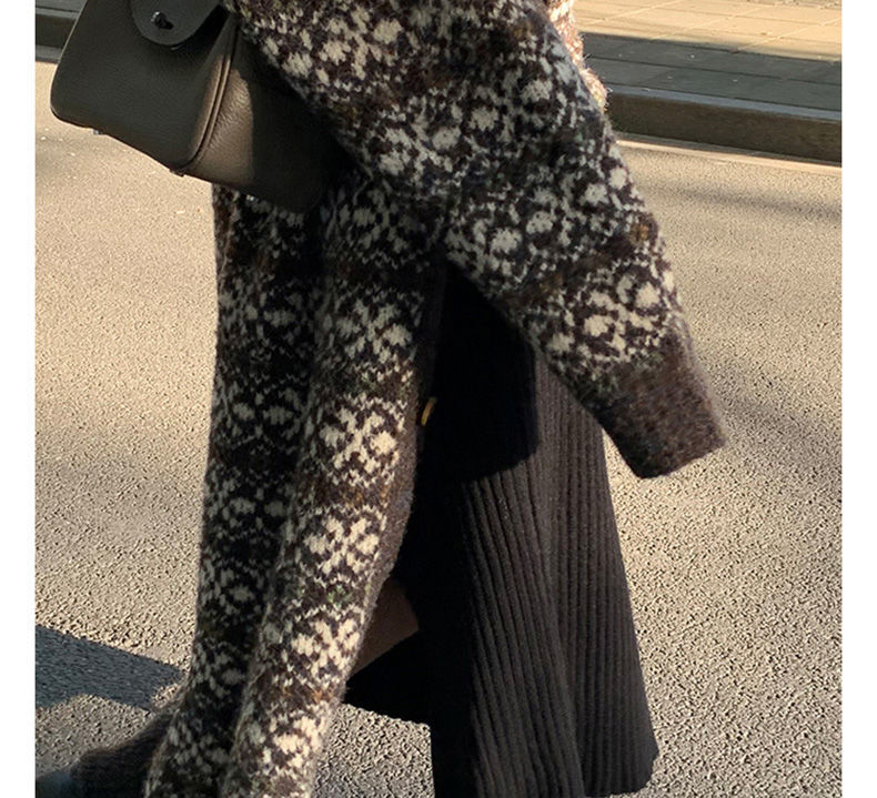 웨스턴 스타일 에스닉 스타일 롱 스웨터 느슨한 게으른 큰 카디건 코트 여성용 자카드 대비 색상 니트웨어 숄스토어 가기