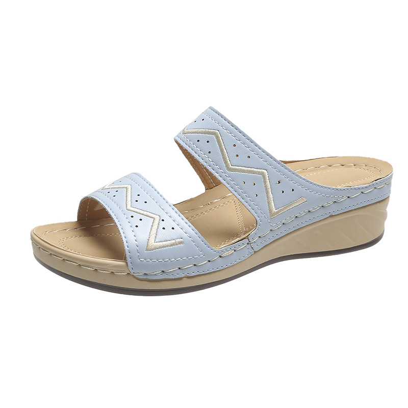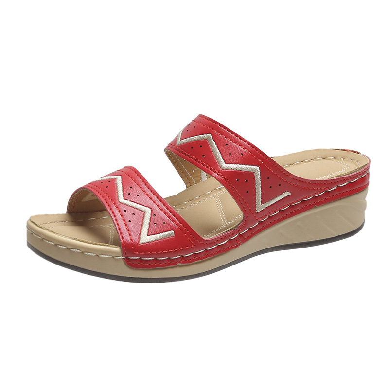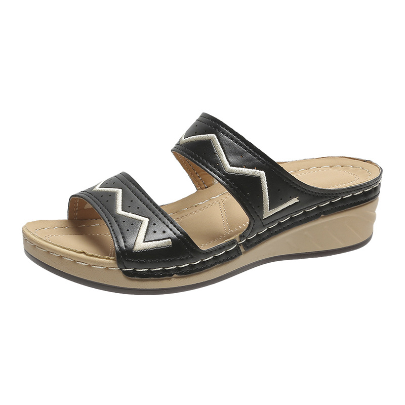 재고 2022 새로운 여름 크로스 국경 대외 무역 플러스 사이즈 캐주얼 라운드 헤드 미드힐 여성용 웨지 슬리퍼