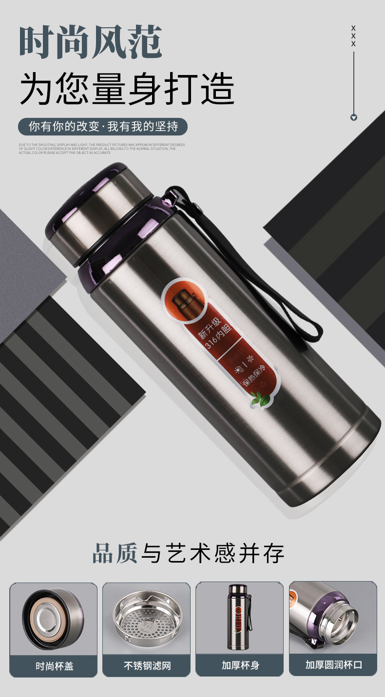 도매 316 스테인레스 보온병 컵 휴대용 멜빵 스타 컵 스포츠 주전자 선물 컵 레터링 로고