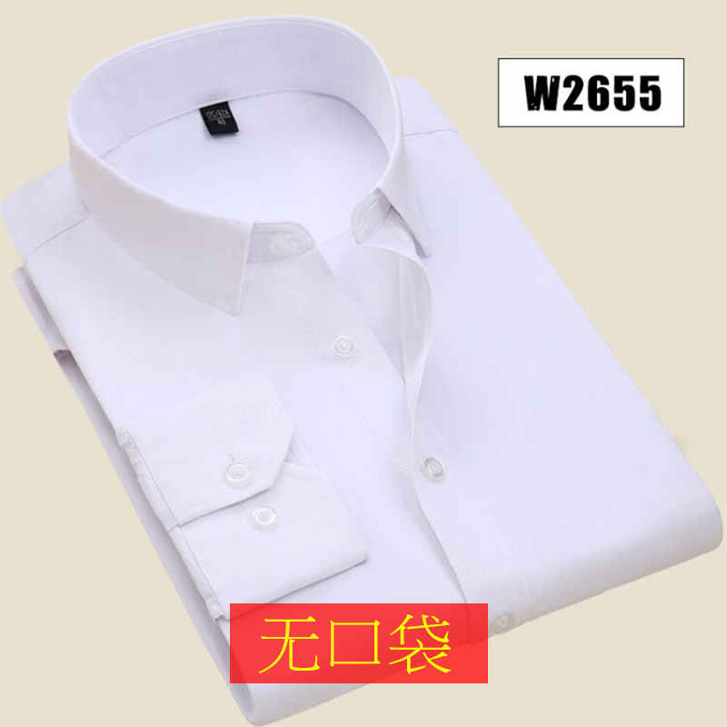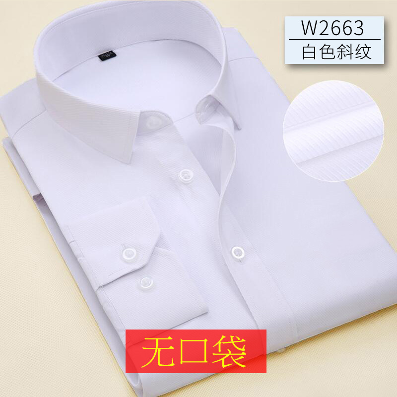 • 포켓 없음 흰색 트윌 긴 소매