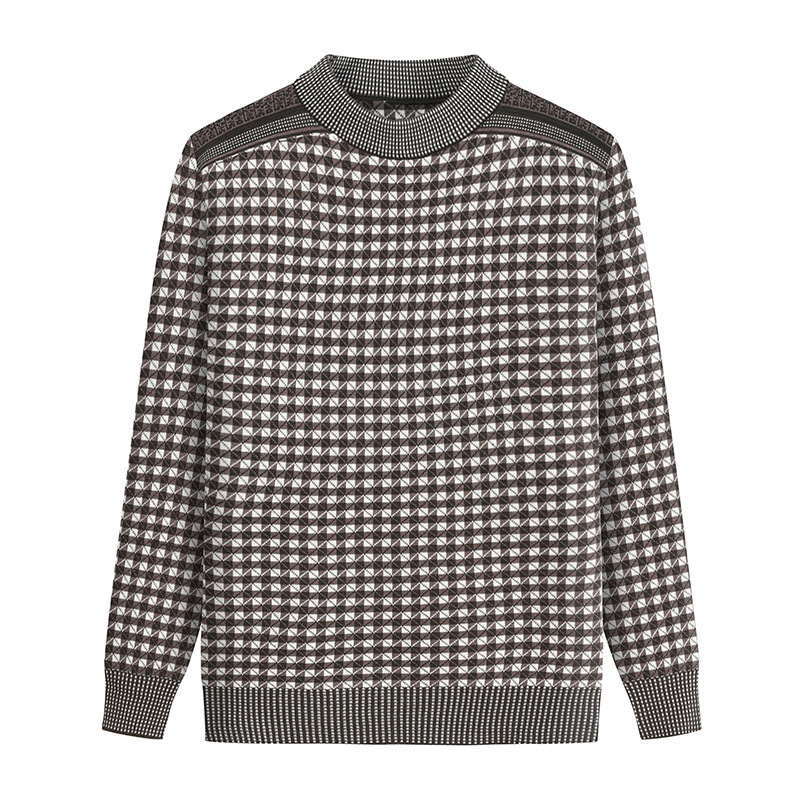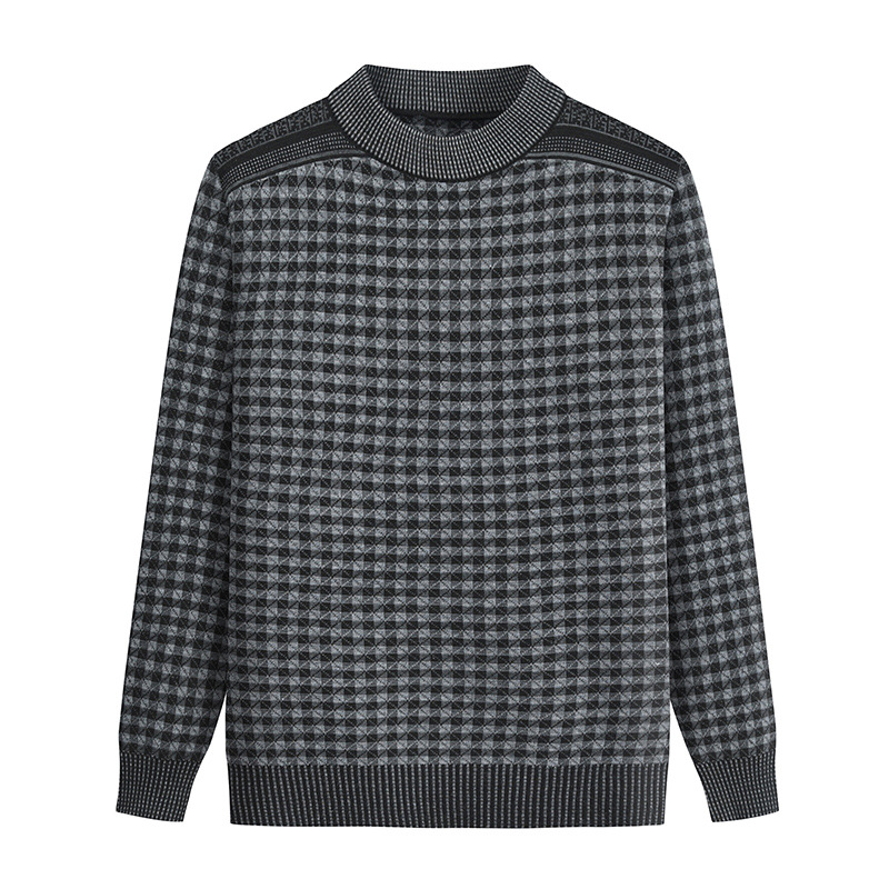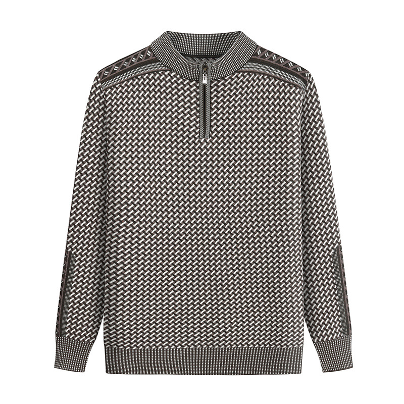 중년 및 노인 아버지 남성용 격자 무늬 베이스 느슨한 캐주얼 스웨터 남성용 긴팔 반 지퍼 풀오버 니트 중국 전나무