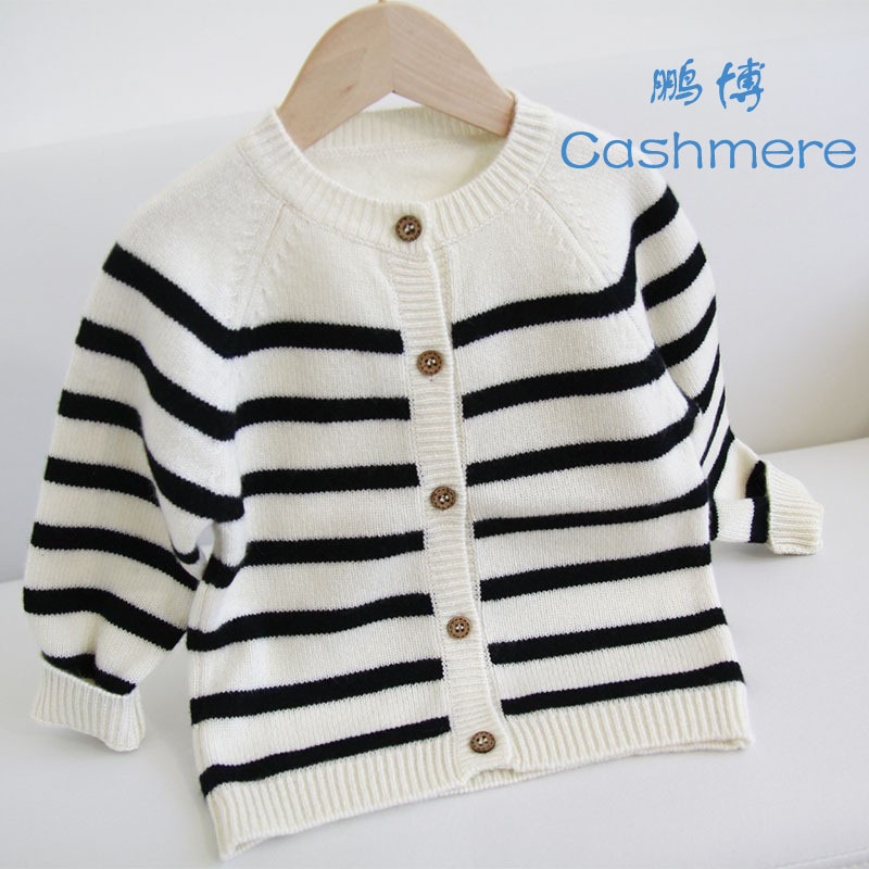 내몽골 공장 도매 새로운 캐시미어 스웨터 아동 스웨터 남녀 라운드 넥 카디건 두꺼운 스트라이프 코트 긴 소매
