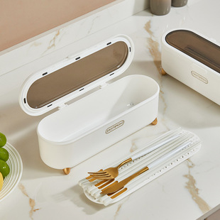 博蓝轻奢高颜值大容量便携筷子盒厨房食品级可沥水筷子勺子收纳盒