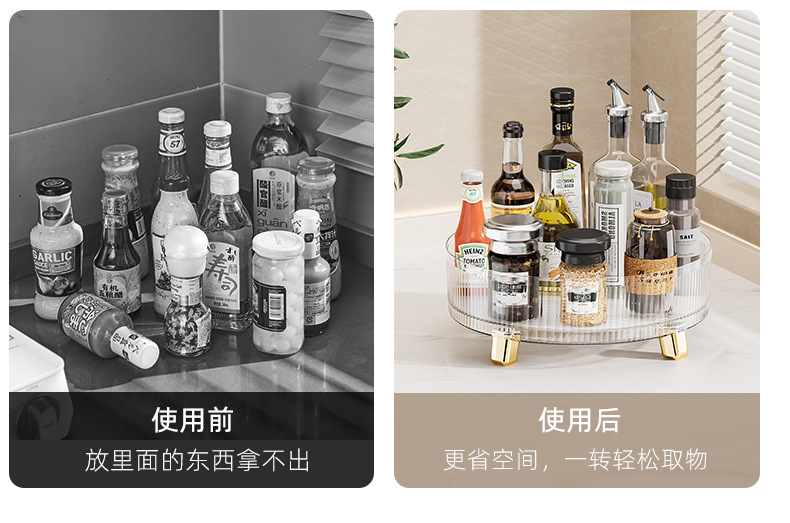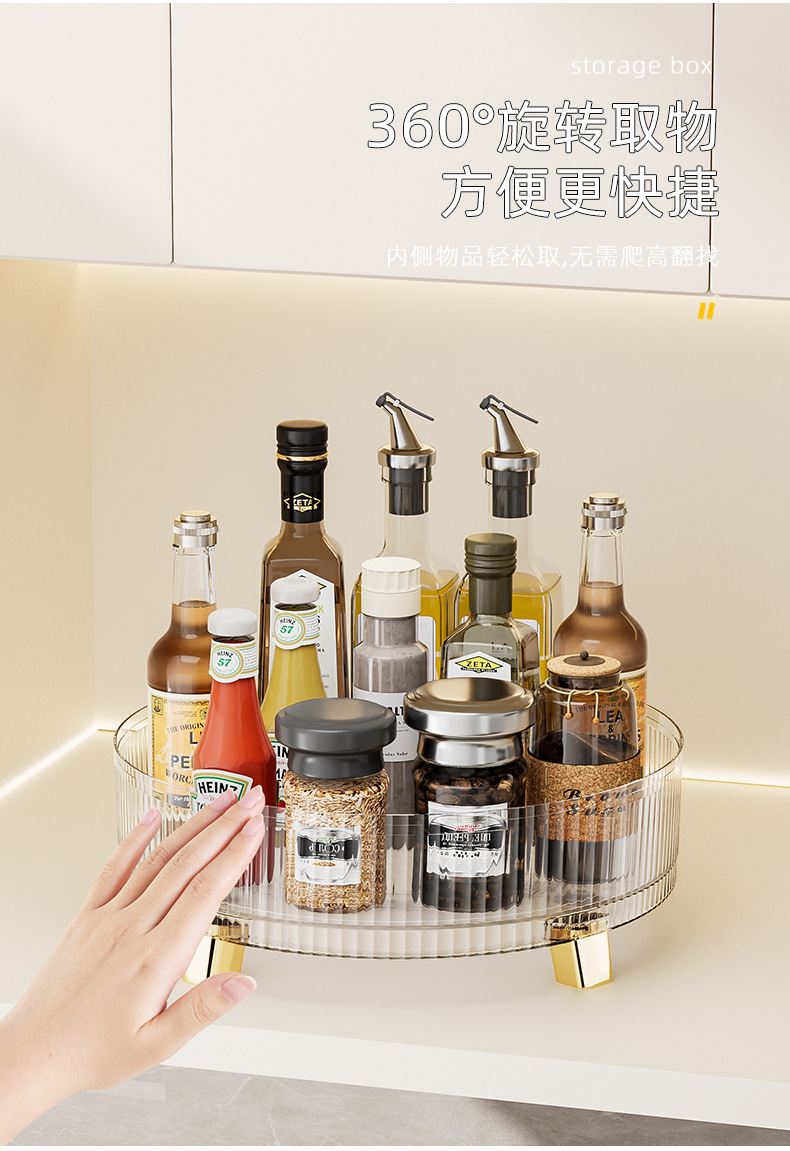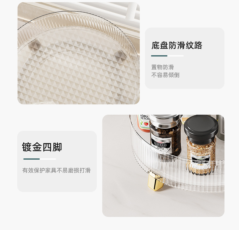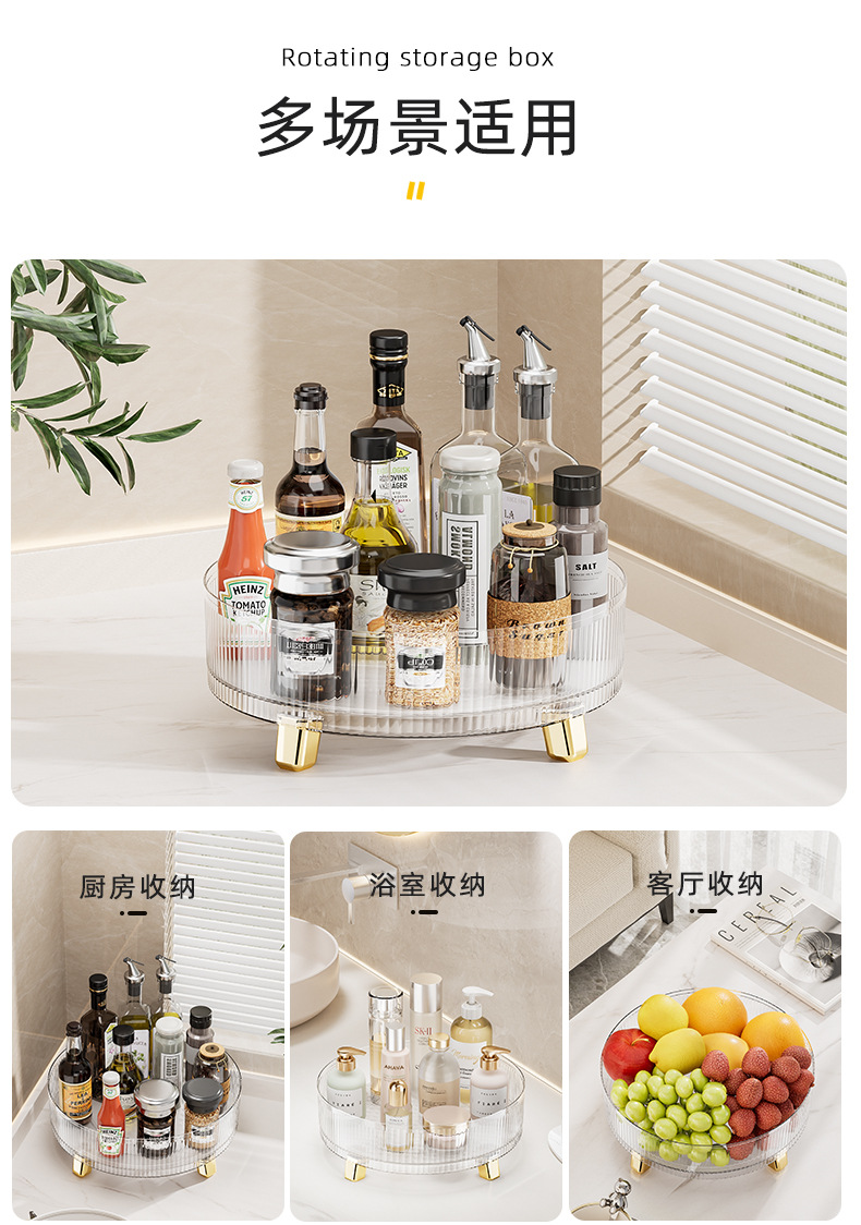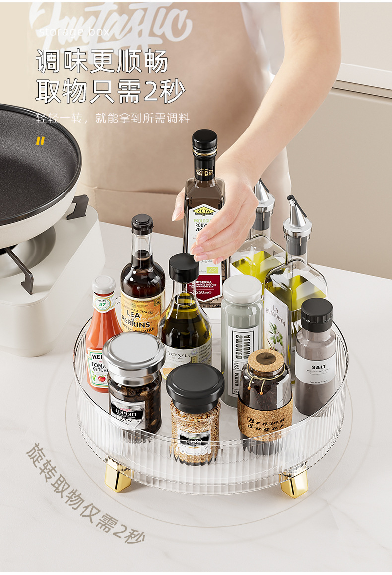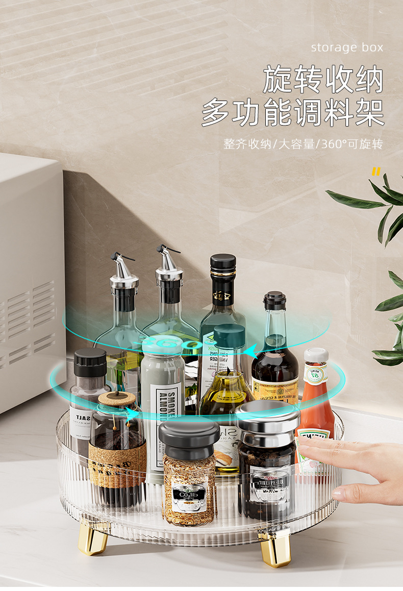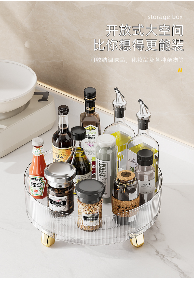 透明多功能调料托盘家用厨房台面旋转置物架高颜值大容量收纳转盘