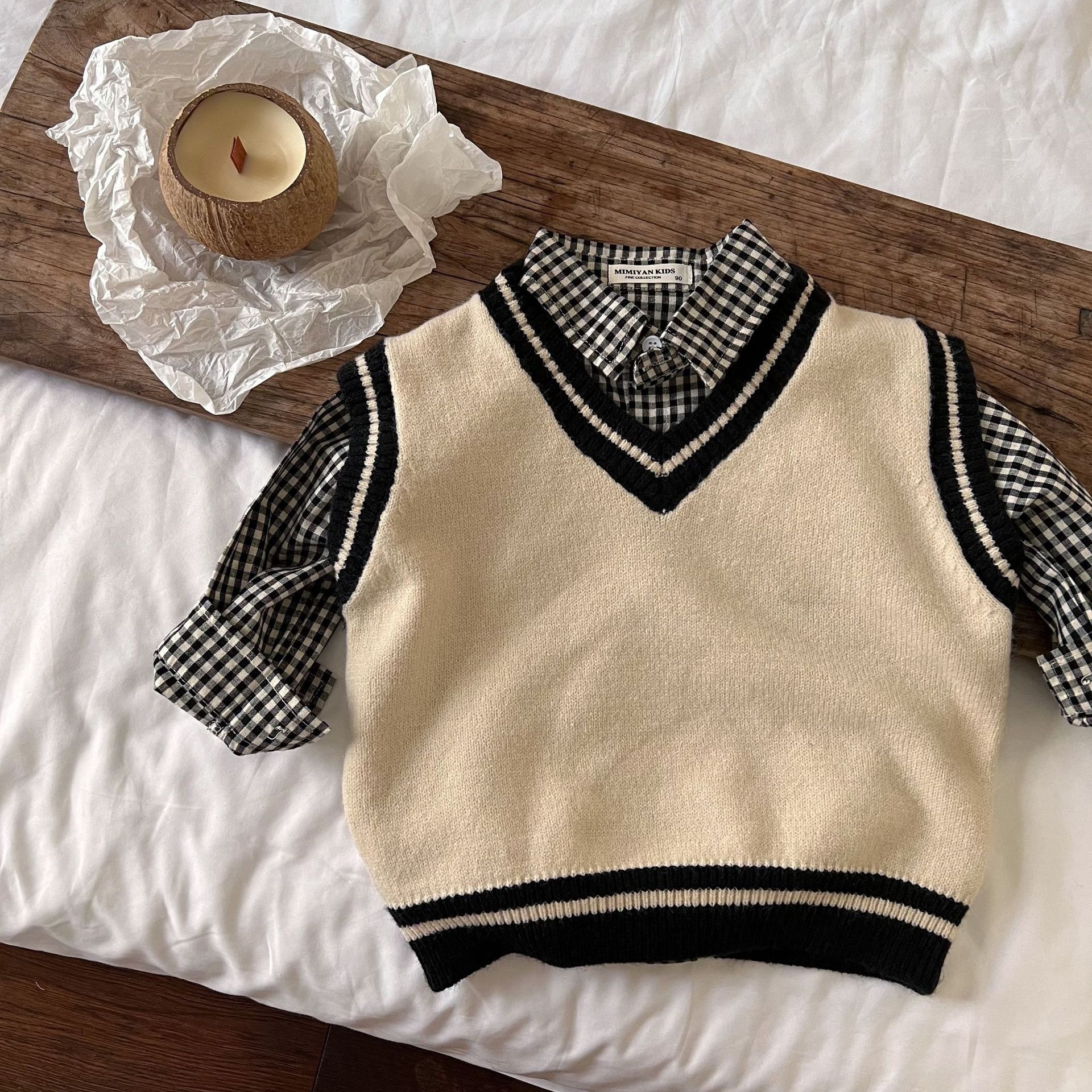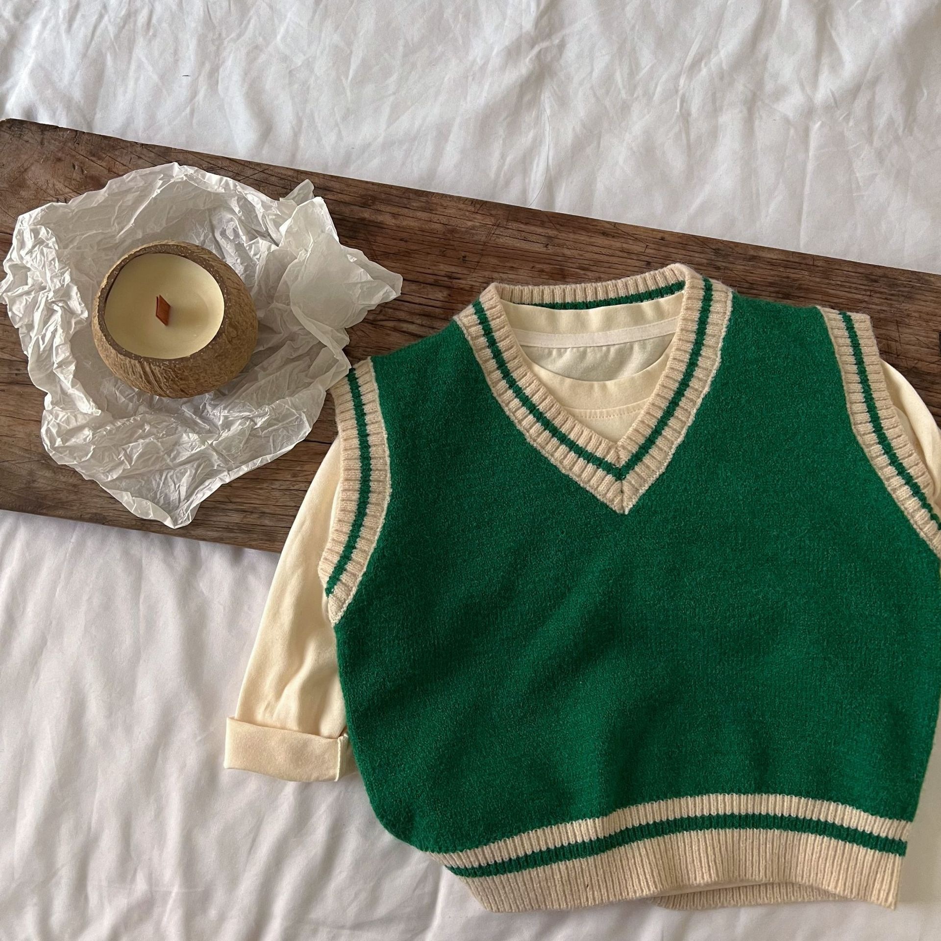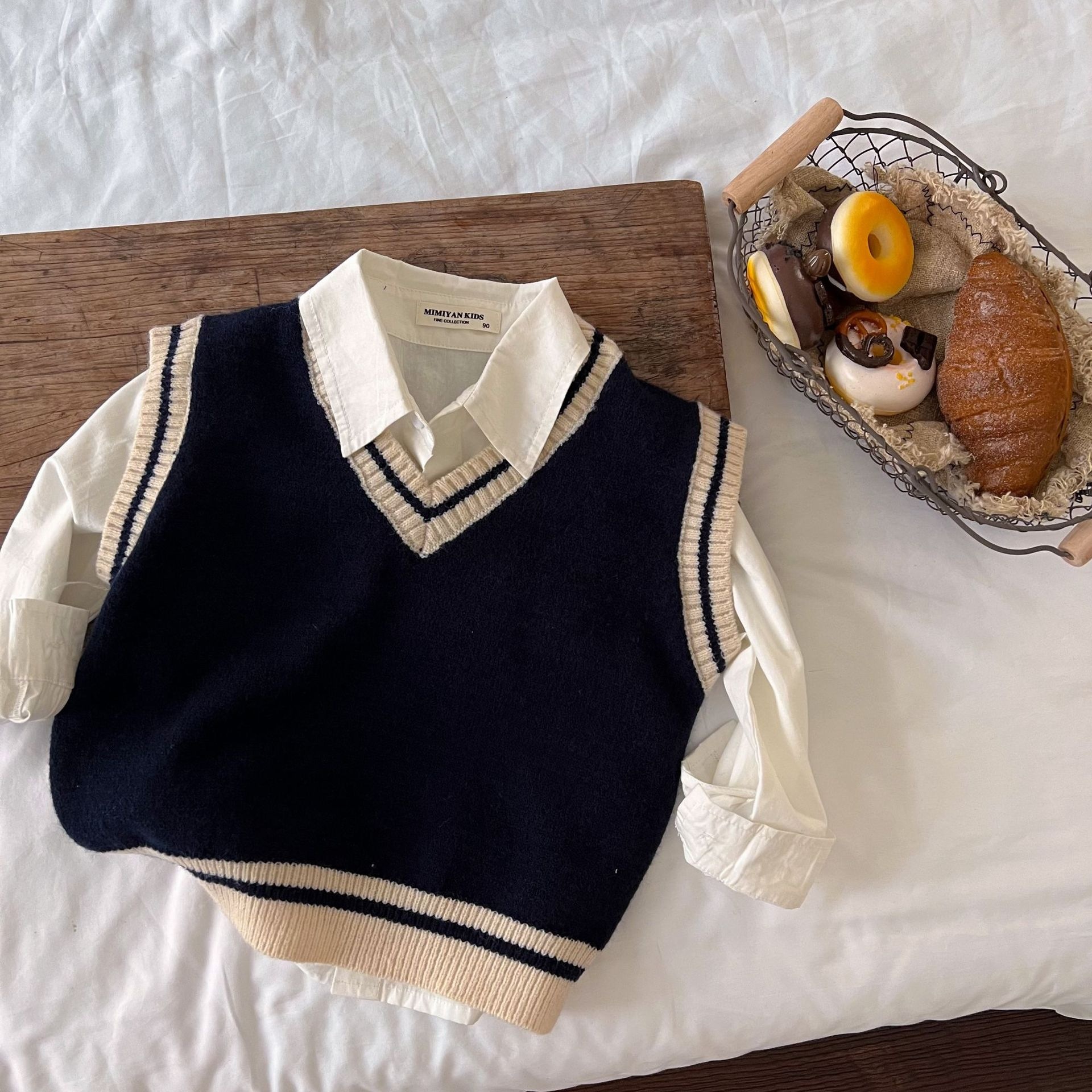 공장 직접 한국 아동복 2022 가을 아동 패션 간단한 남성과 여성의 V-넥 울 조끼 니트 스웨터스토어 가기