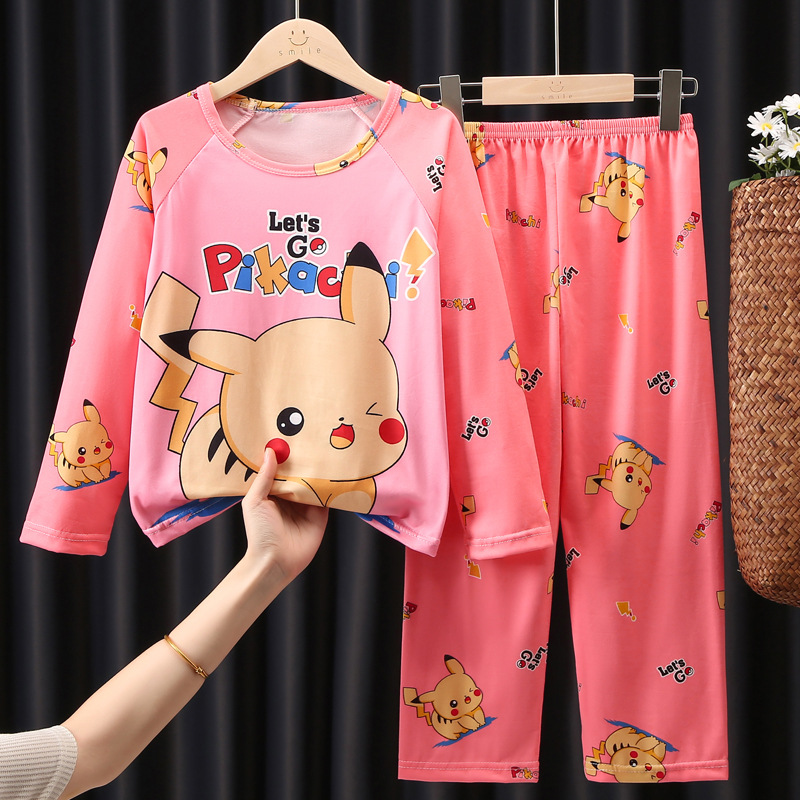 어린이 잠옷 봄 얇은 우유 실크 긴 소매 소년과 소녀 여름 슈퍼 귀여운 만화 에어컨 가정용 옷