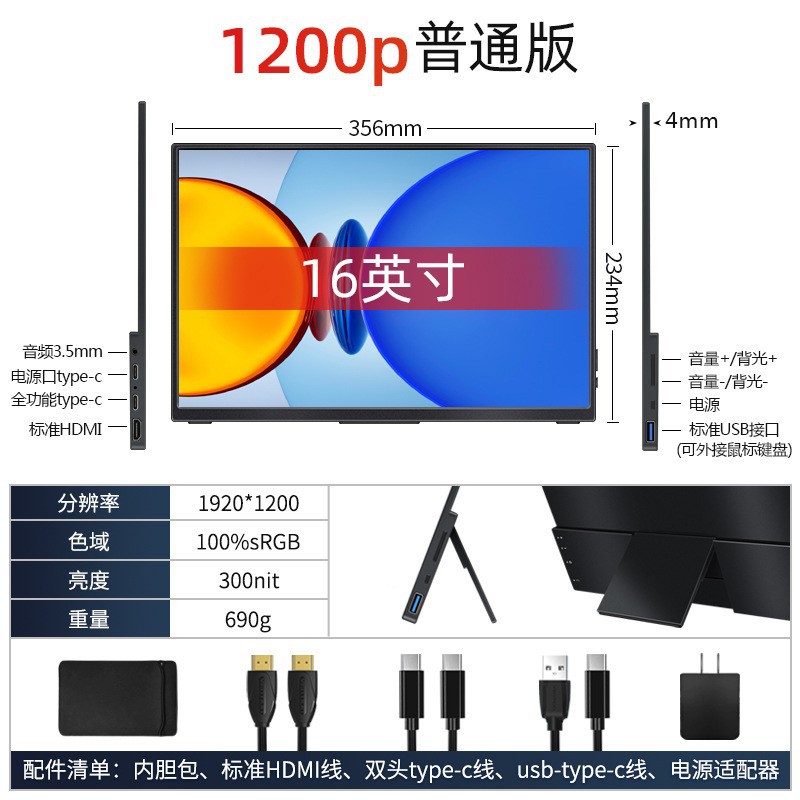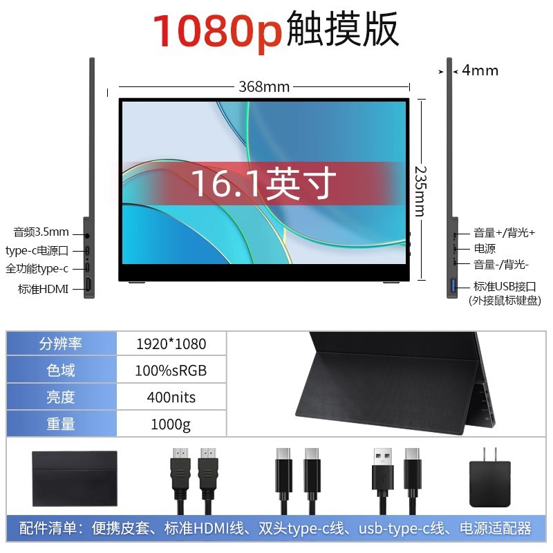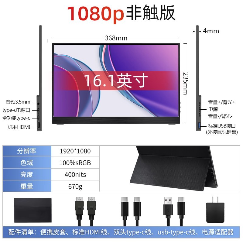 RoHS认证 便携屏 副屏 平板 设计 外贸 诚意赊 xbox 刷新率60Hz 15.6英寸