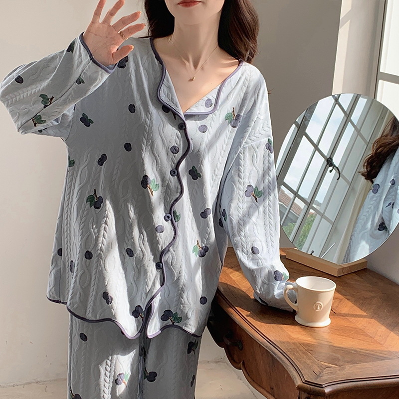 잠옷 여성의 새 면화 봄 가을 겨울 긴팔 카디건 한국 궁전 귀여운 달콤한 집 옷을 입을 수 있습니다 도매스토어 가기