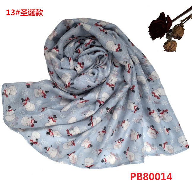 유럽과 미국 크리스마스 빨간색과 녹색 눈사람 인쇄 발리 원사 스카프 긴 선 스크린 비치 타월 도매 패턴 스카프