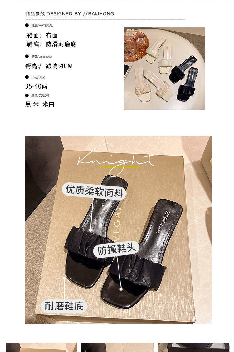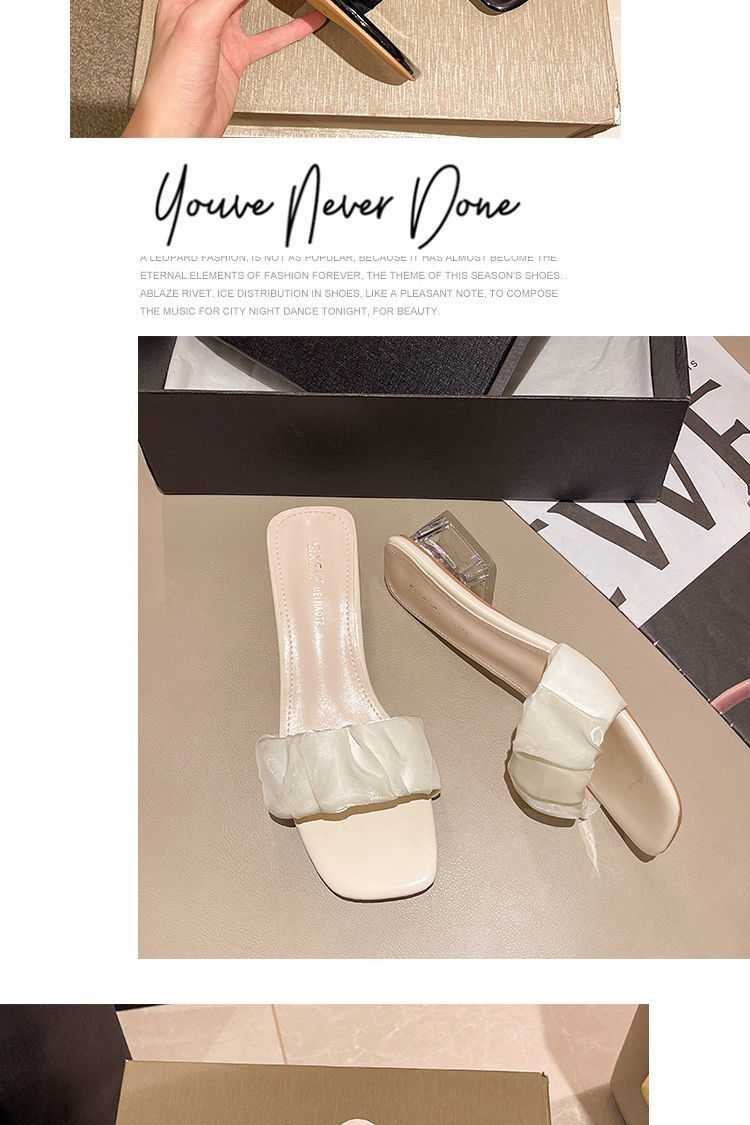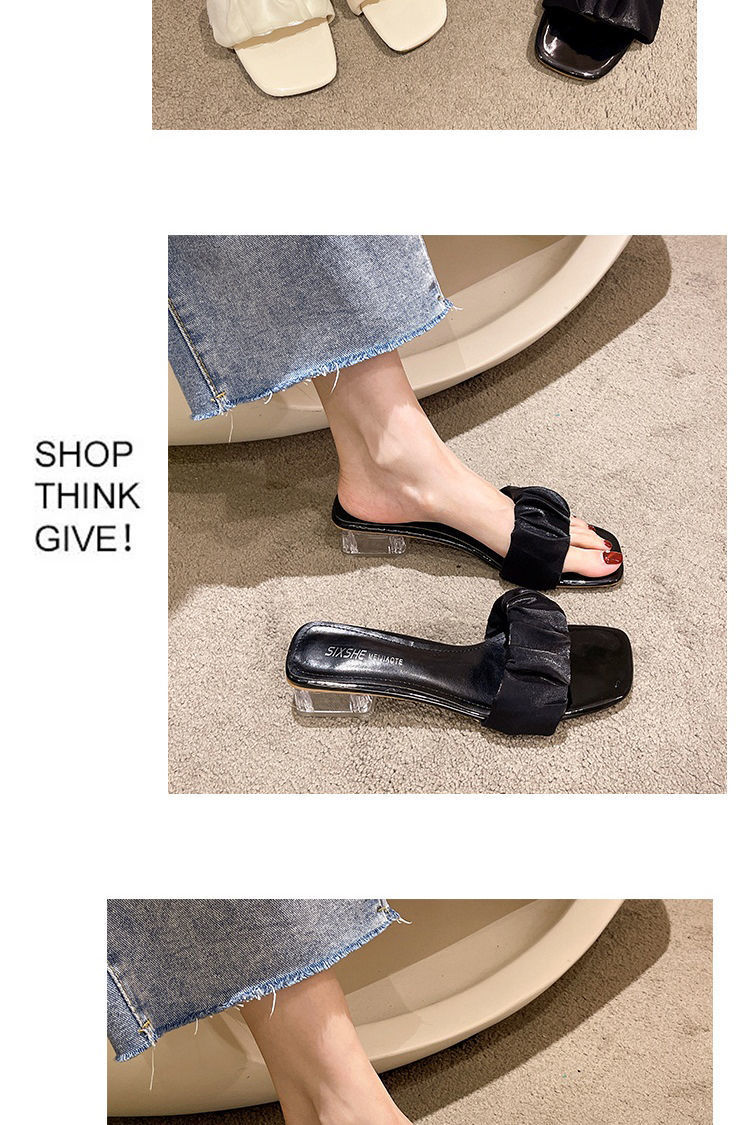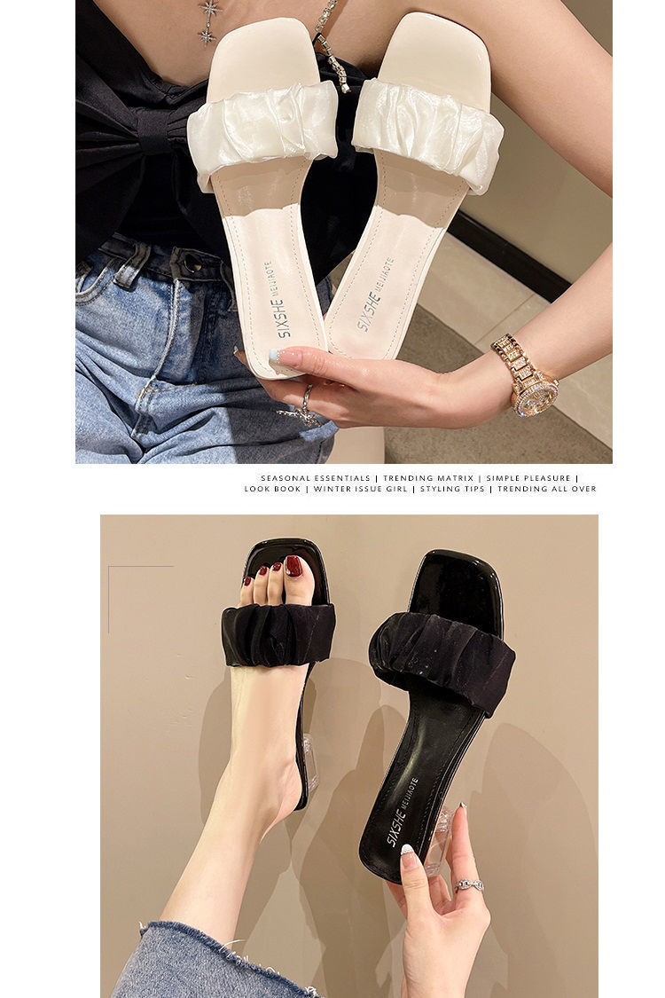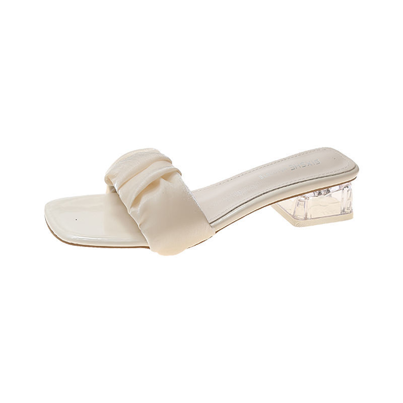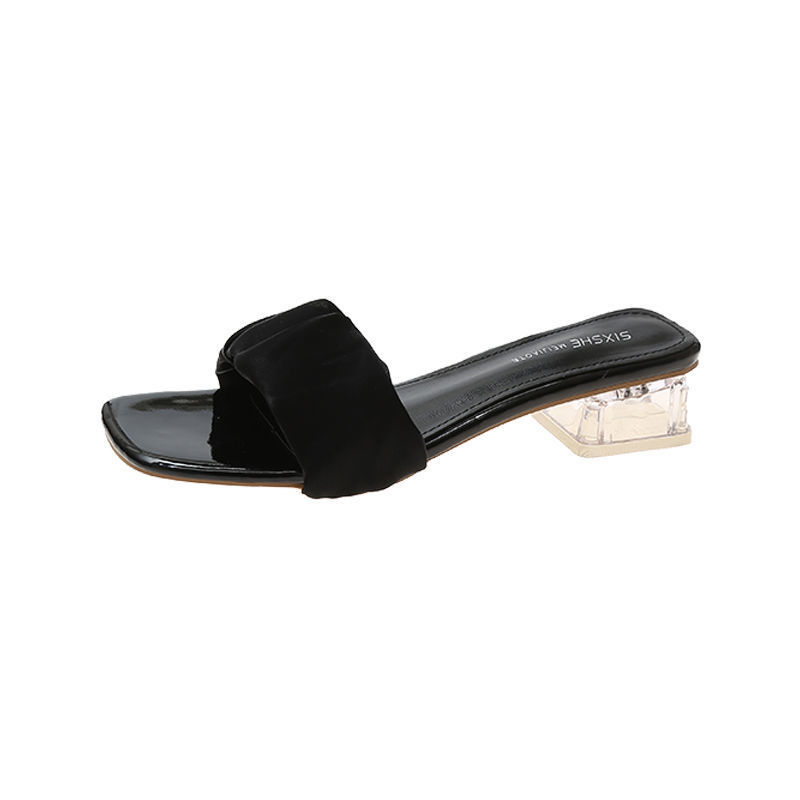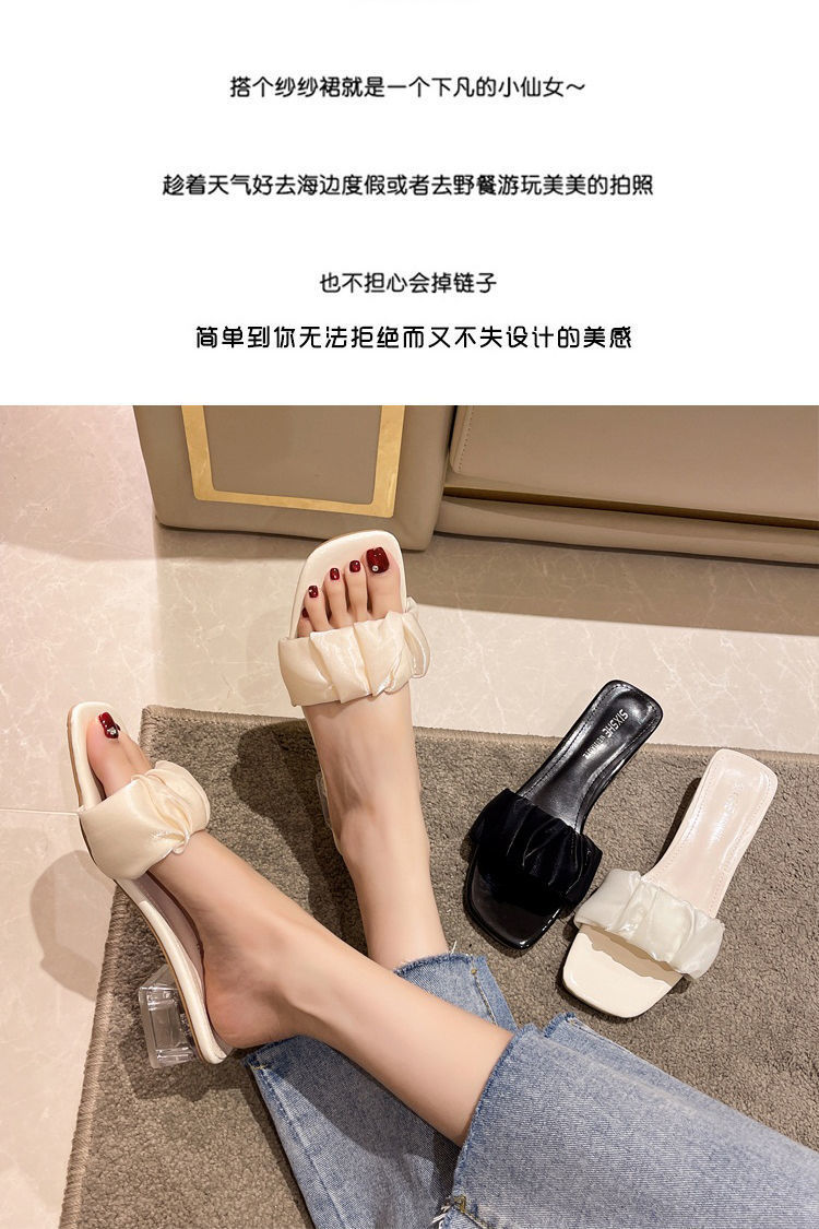 슬리퍼 여성용 여름 착용 2022 새로운 패션 페어리 스타일 크리스탈 두꺼운 힐 슬라이드 스퀘어 헤드 미드 힐 샌들